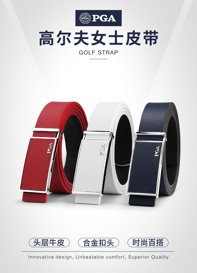 美国PGA 高尔夫皮带女士头层牛皮运动女装真皮女款白色休闲女腰带