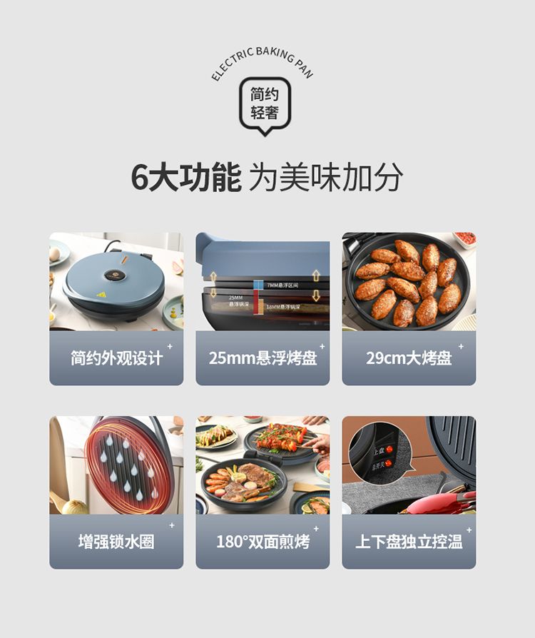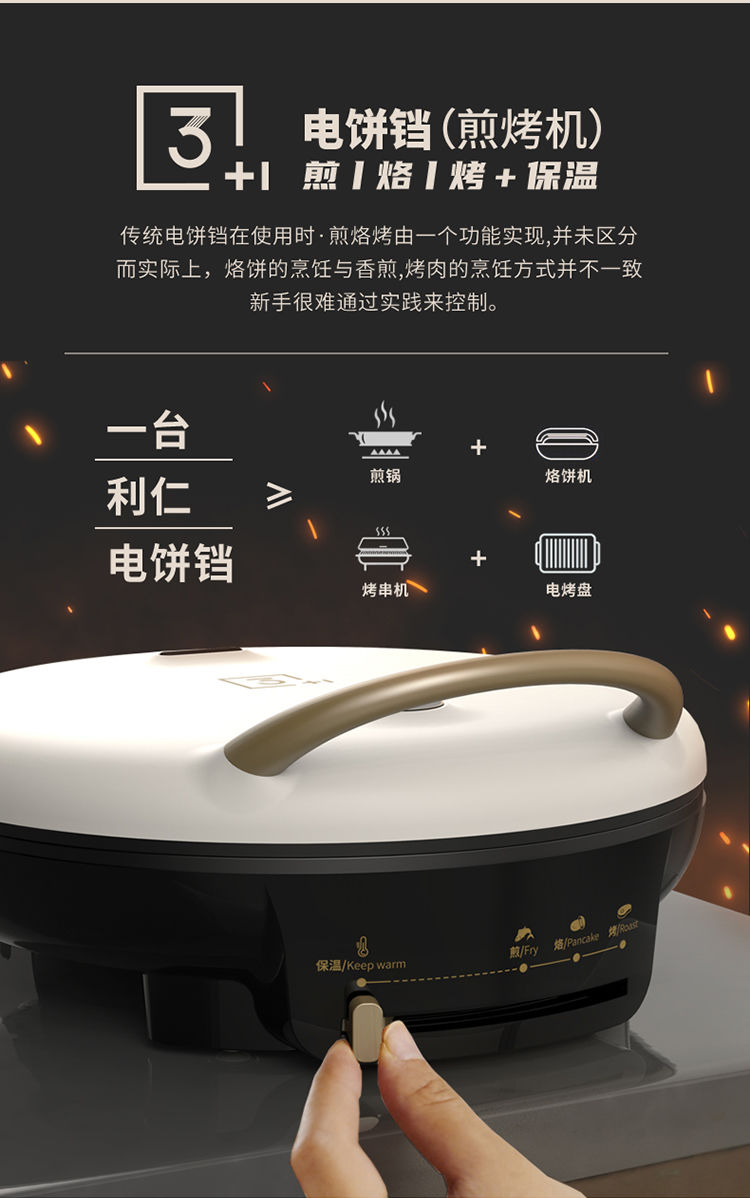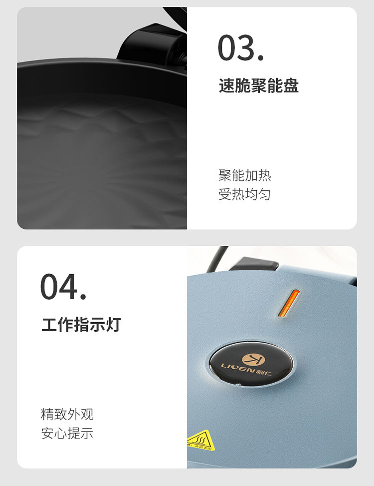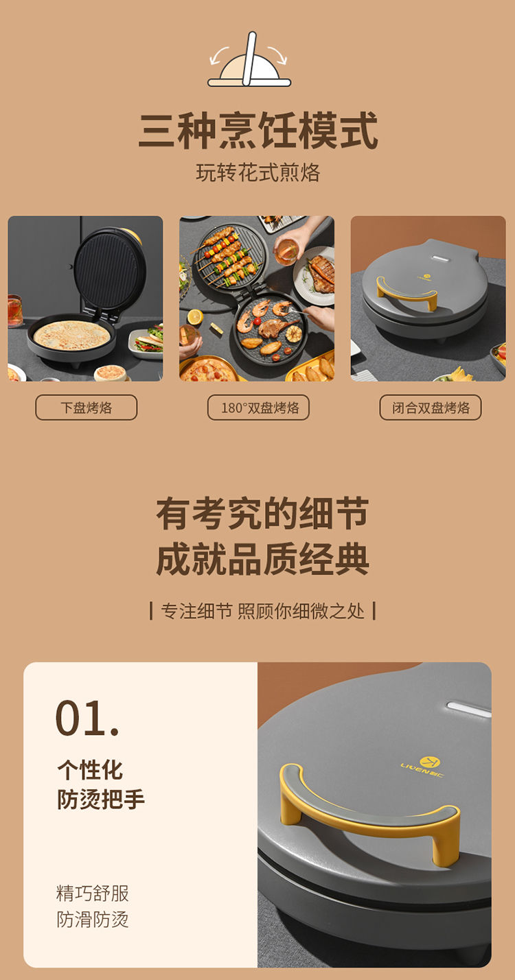 利仁电饼铛家用双面加热加深烤盘煎饼锅烙饼锅电煎锅三明治早餐机