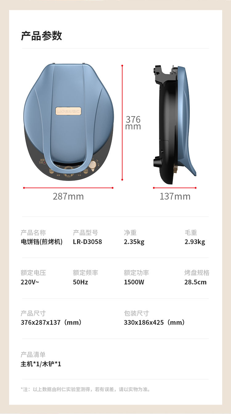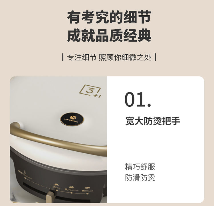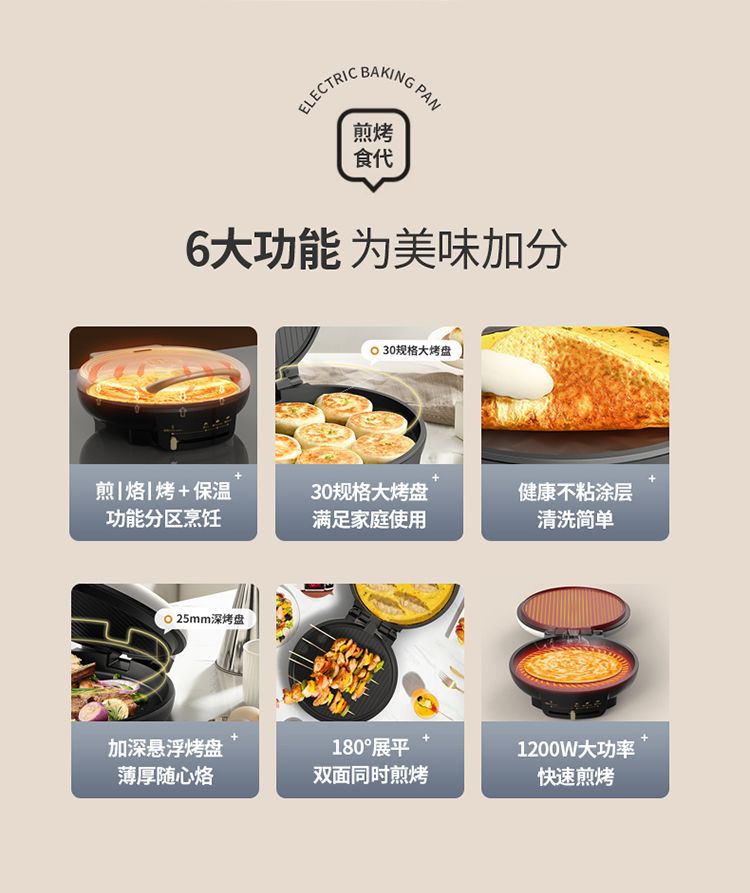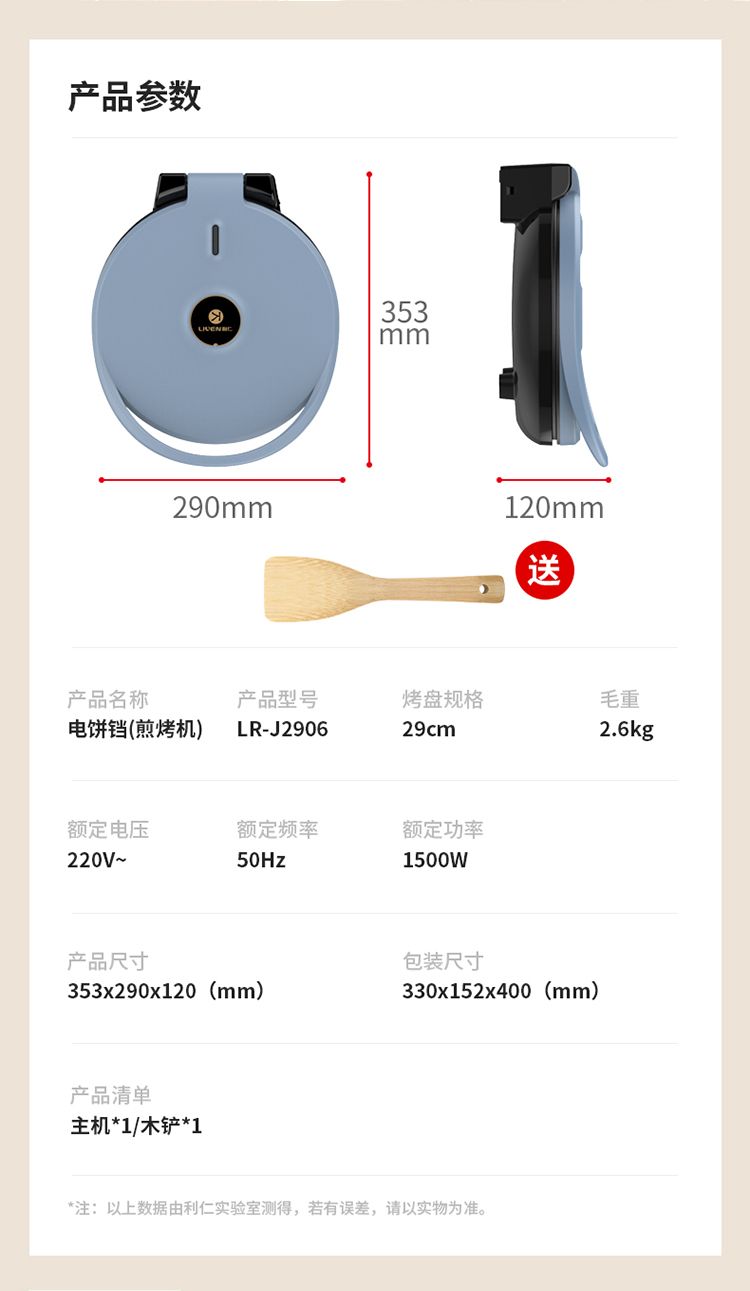 利仁电饼铛家用双面加热加深烤盘煎饼锅烙饼锅电煎锅三明治早餐机