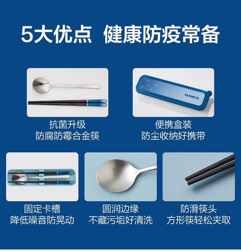 【6F】多样屋可折叠筷子便携式餐具旅行筷子盒合金套装筷子勺子套装上班族学生餐具一人食家用外带筷子单人装 浩天安心便携勺筷二件套