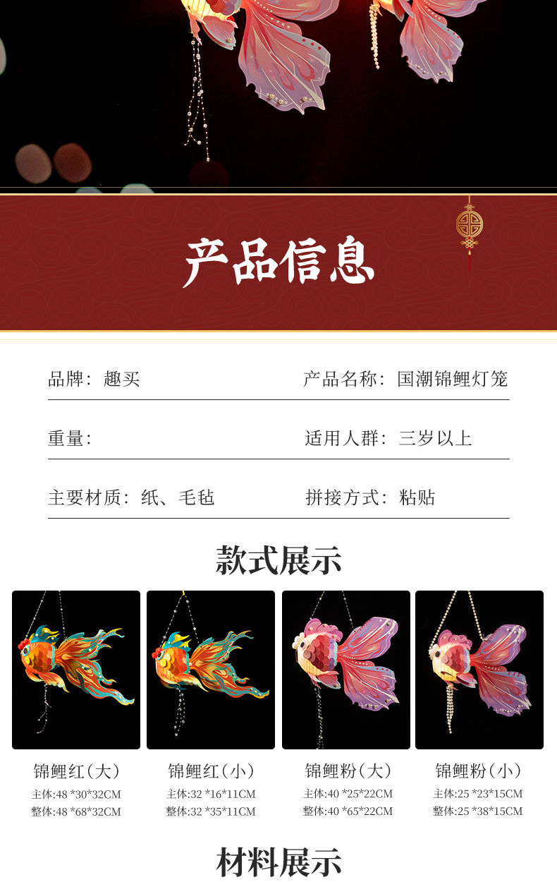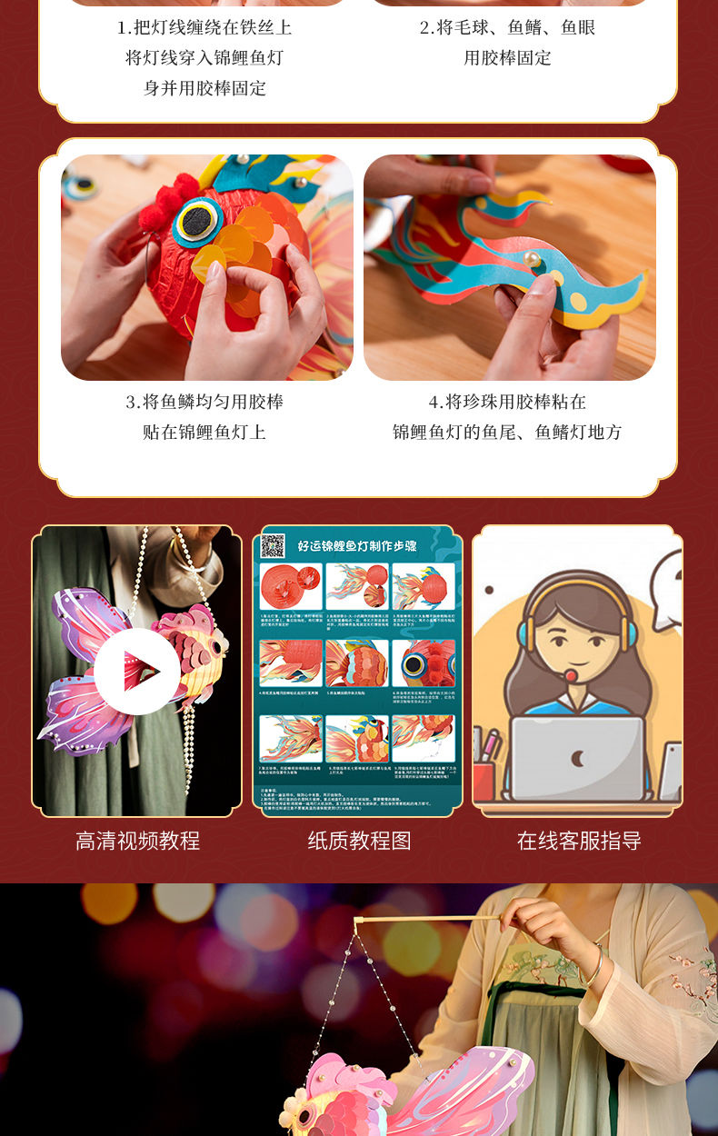 节日手提发光金鱼灯笼锦鲤鱼儿童制作diy材料包古风花灯手工