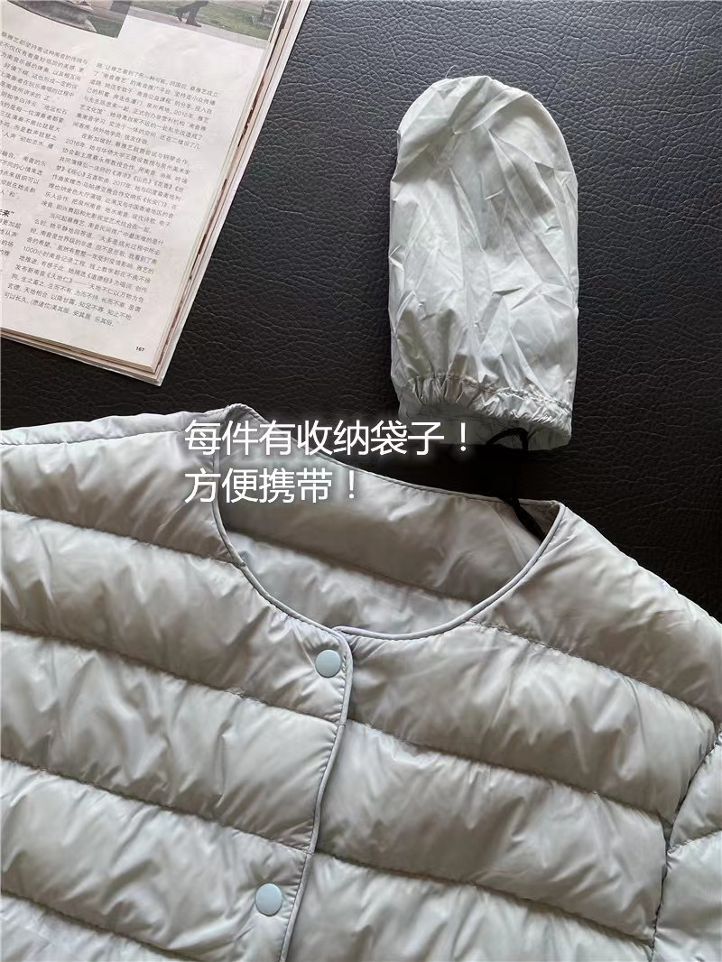 注意这是轻薄型羽绒马甲,在仓库一直压着,大家收到的时候会扁扁的,拿出来拍打一下挂起来,用吹风机吹一吹,就马上蓬松了哈…