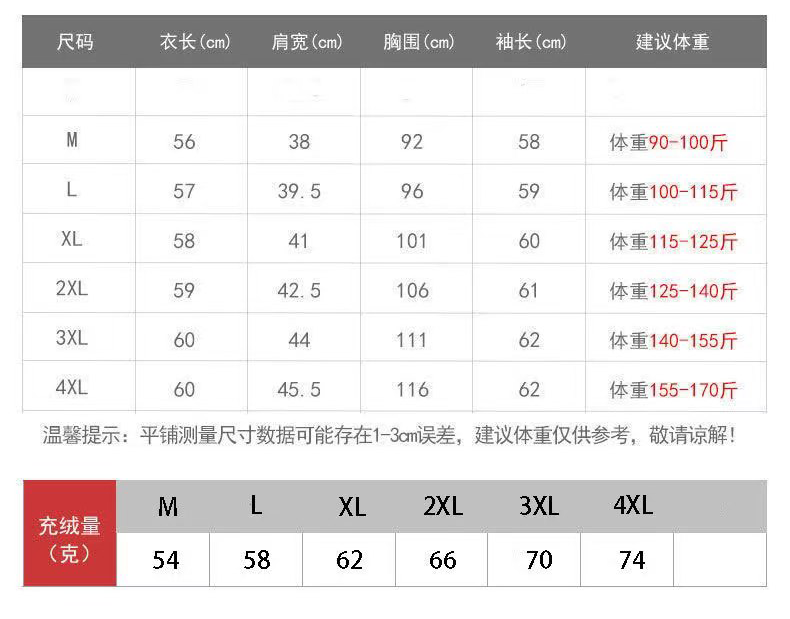 🔹充绒量克数:(大约)