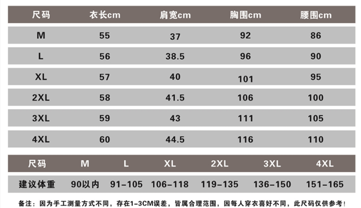 M36克,L39克,XL42克,2XL44克,3XL47克,4XL49克