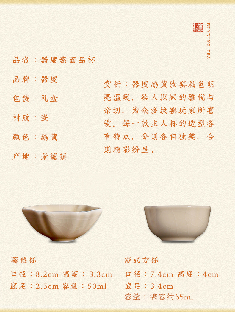 问鼎器度汝窑小梅花杯 吉雅杯 葵盏杯 菱式方杯 青莲杯 玉钩杯 绽蕊杯 直口八方杯(缺货)