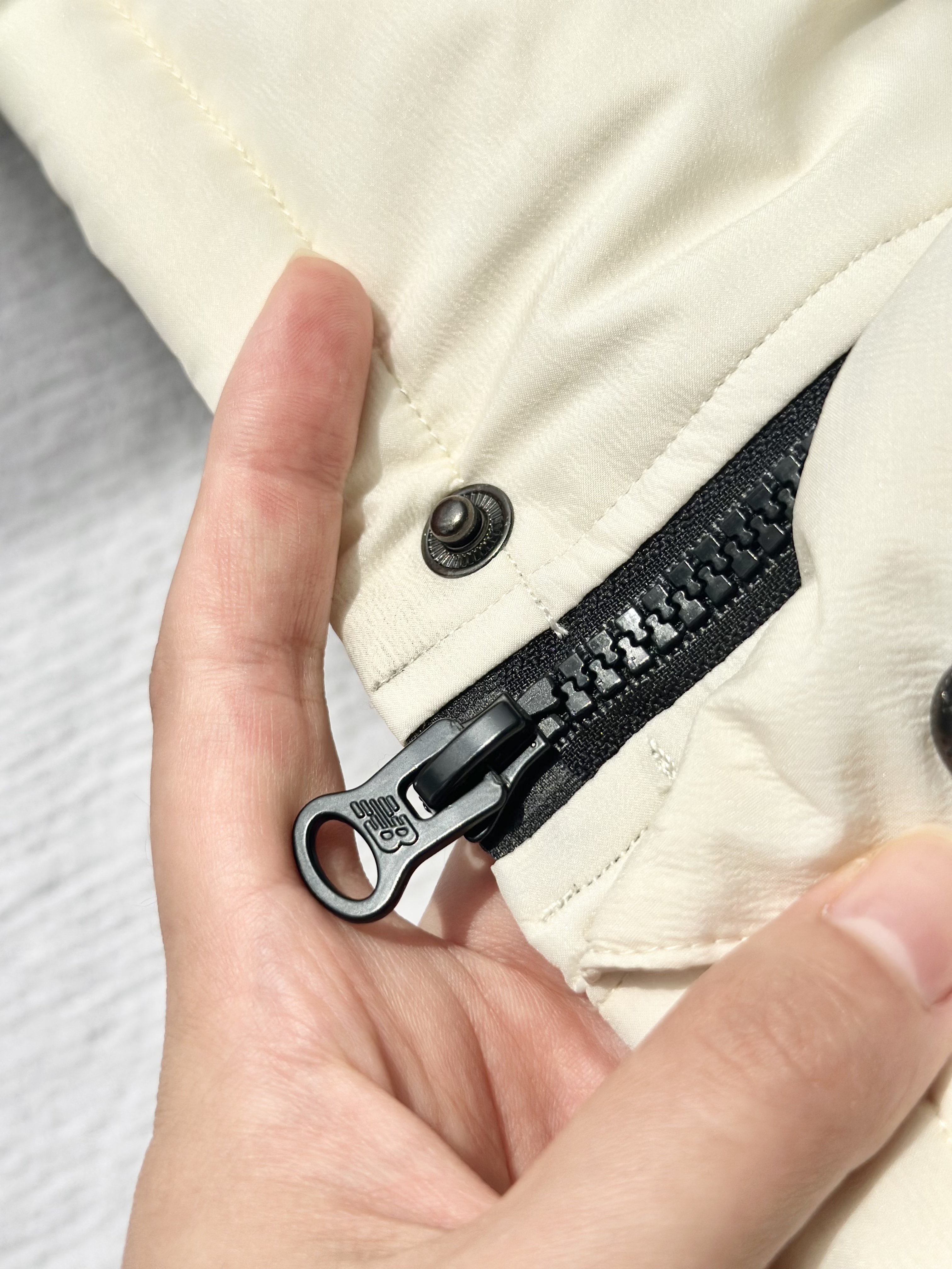 男女同款 80白鸭填充 胸前刺绣字母logo,万针刺绣进口机绣;门襟双拉链开合 品牌定制拉链;
