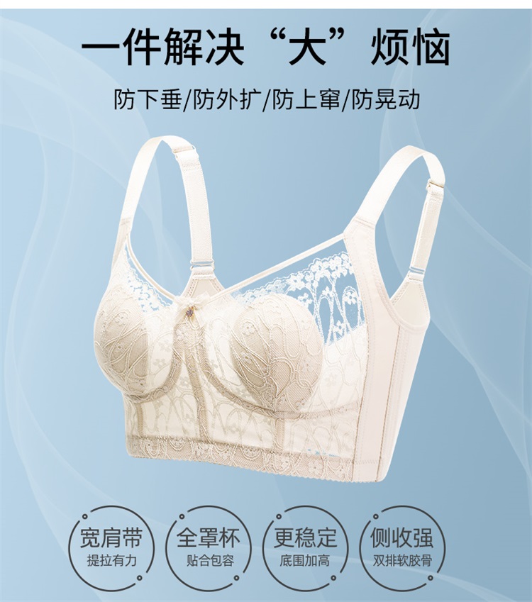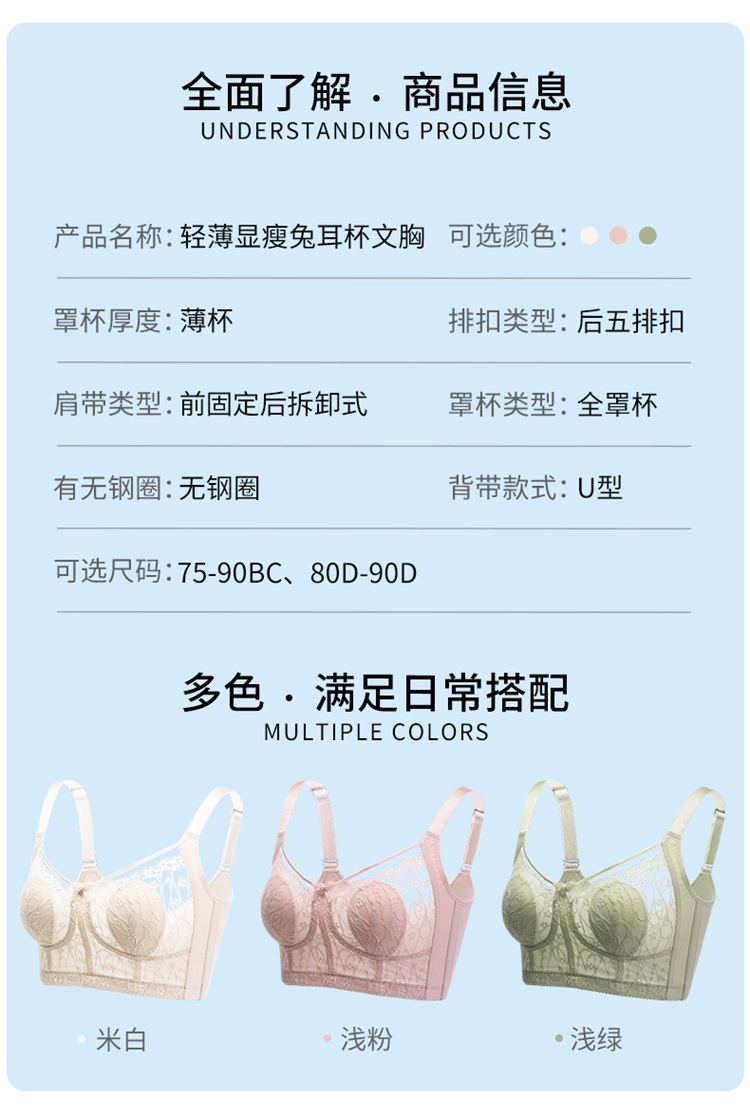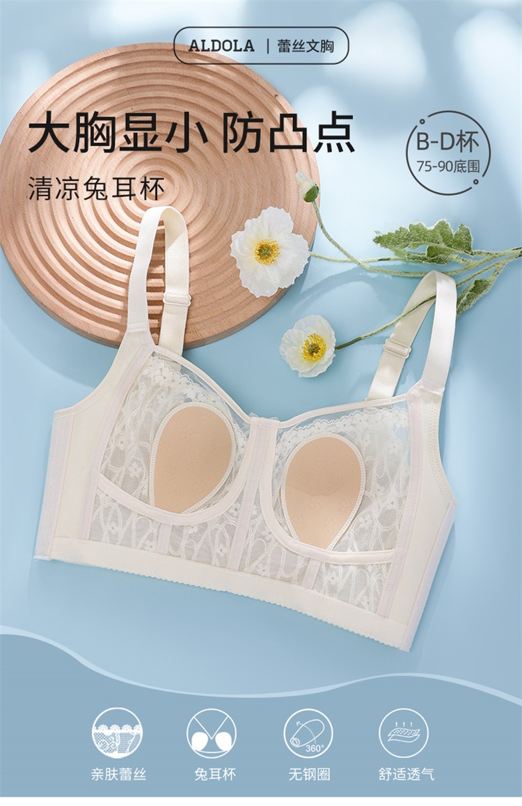 雅黛丽内衣女兔耳杯大胸显小防走光文胸收副乳防下垂夏季薄款胸罩