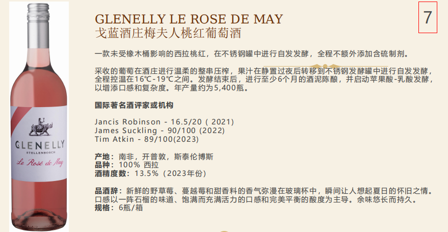 【南非优雅西拉桃红】Glenelly Le Rose De May 2024 750Ml