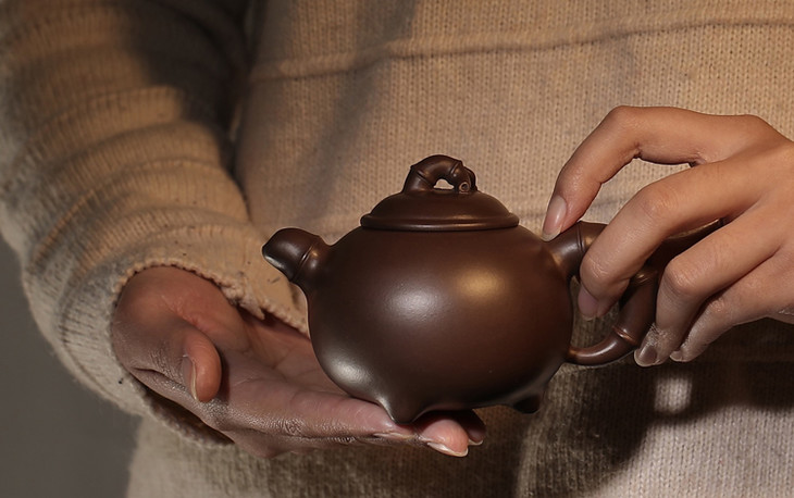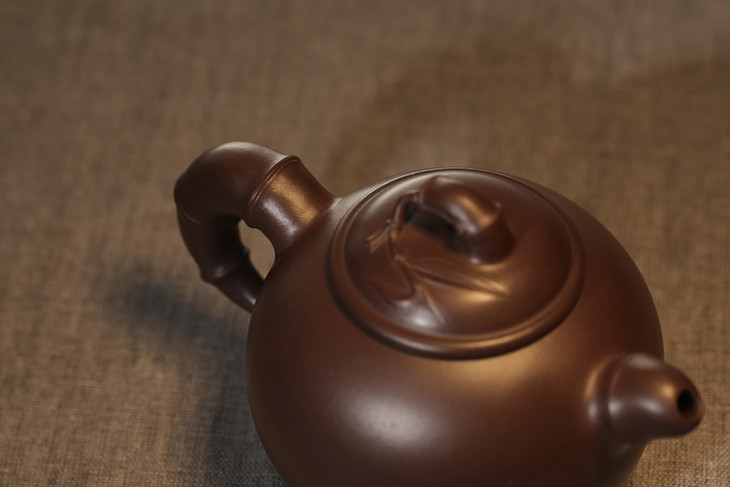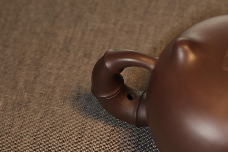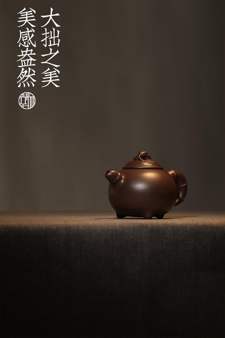 陶手的手法细腻到了极致,以竹为题材,壶嘴,壶把,壶盖都作竹节状,圆器造型丰腴饱满,气韵深蕴,线条和细节的处理昂然地透出敦厚的气质和豪放遒劲的力感。