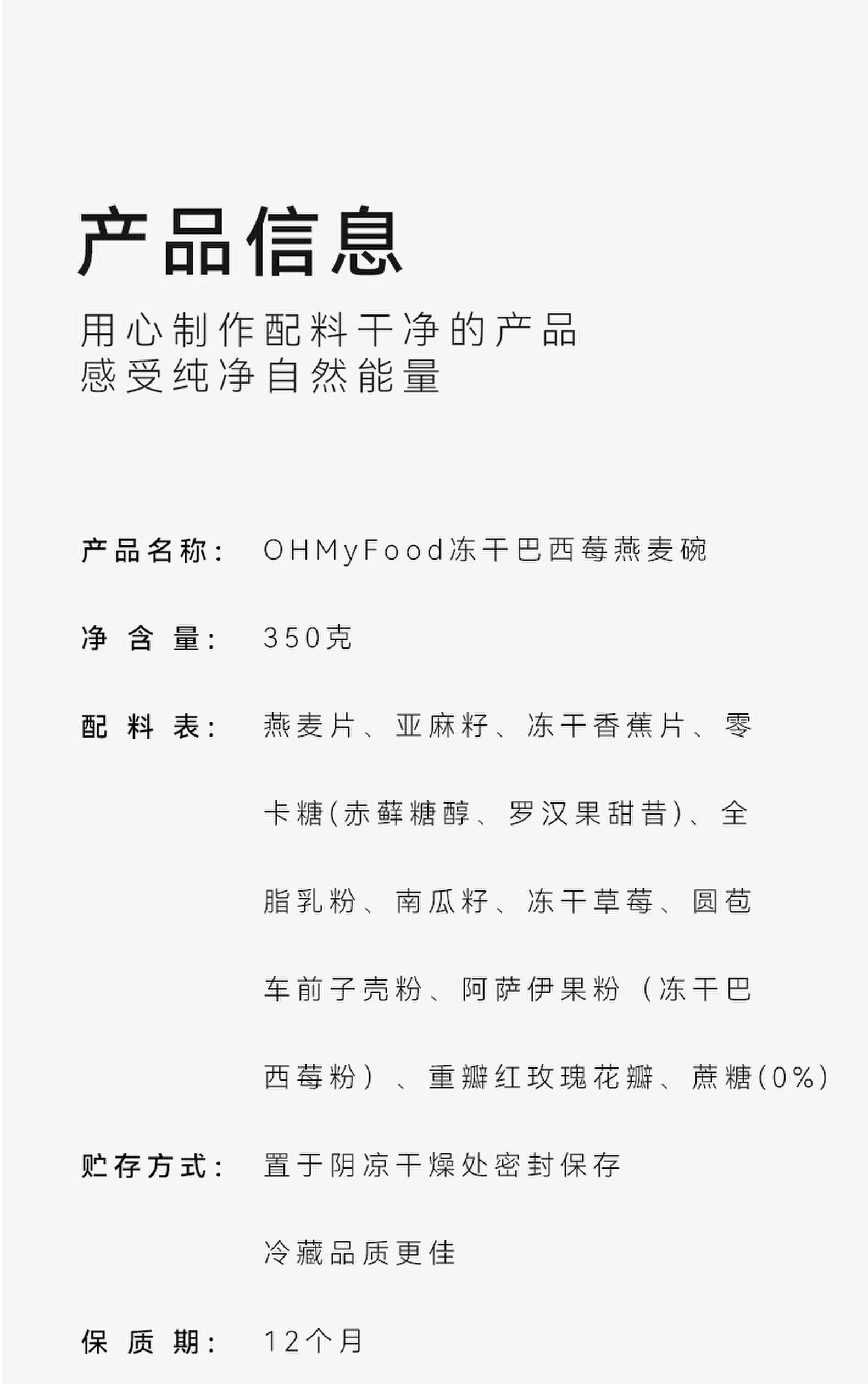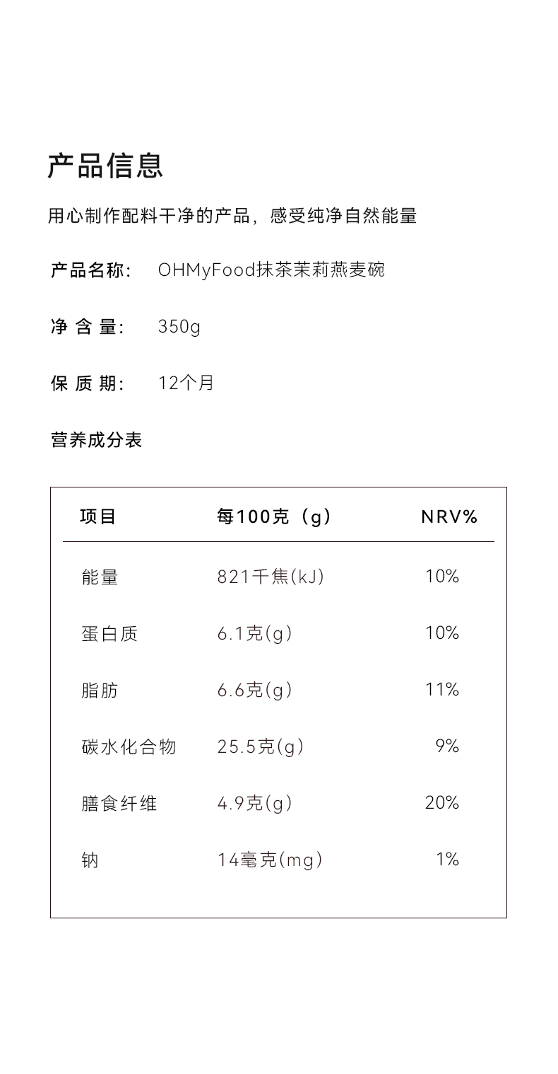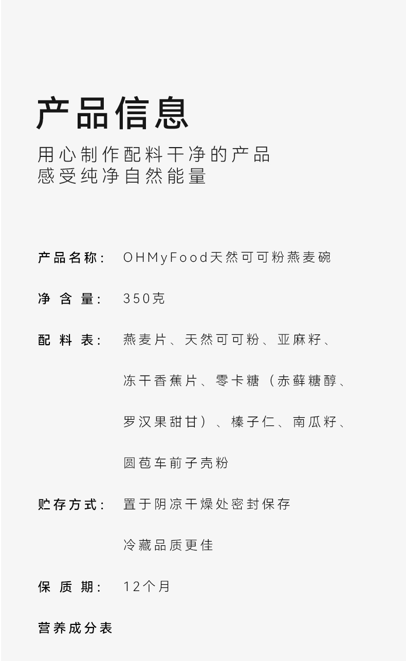 OH My Food 可可味燕麦碗/冻干巴西燕麦碗/抹茶茉莉燕麦碗 350g/盒