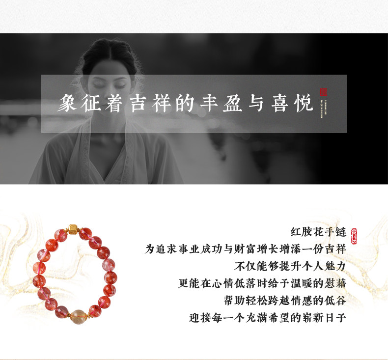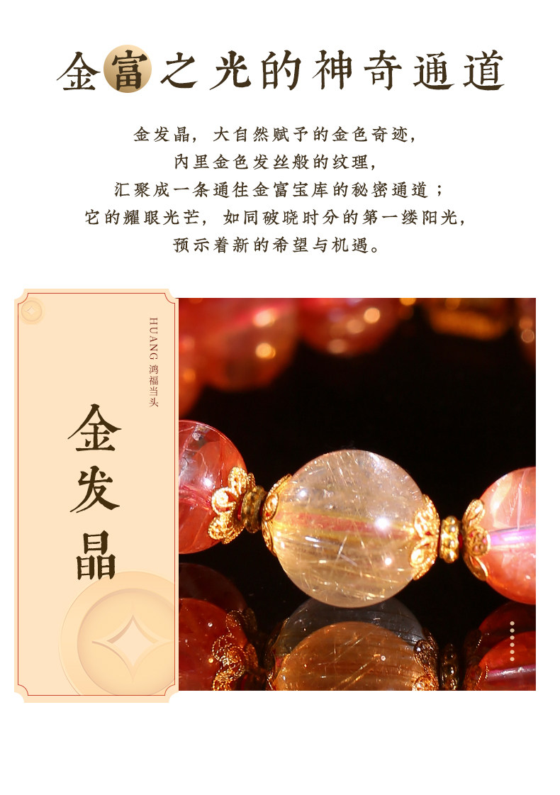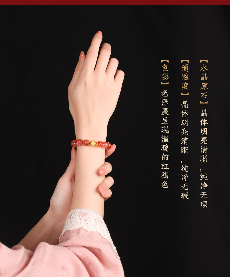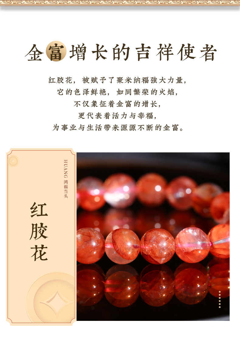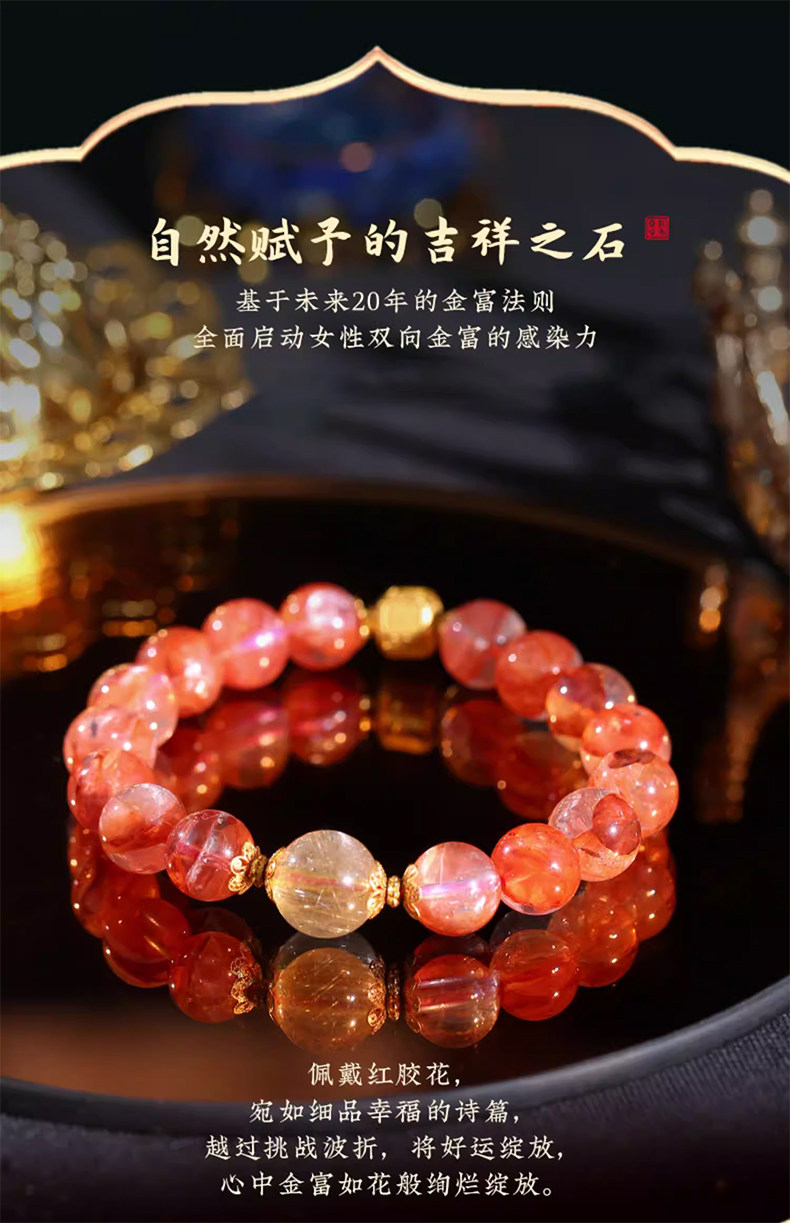 【祈愿吉品】红胶花钱源滚滚手链 鸿运当头金富自来 金发晶水晶手串