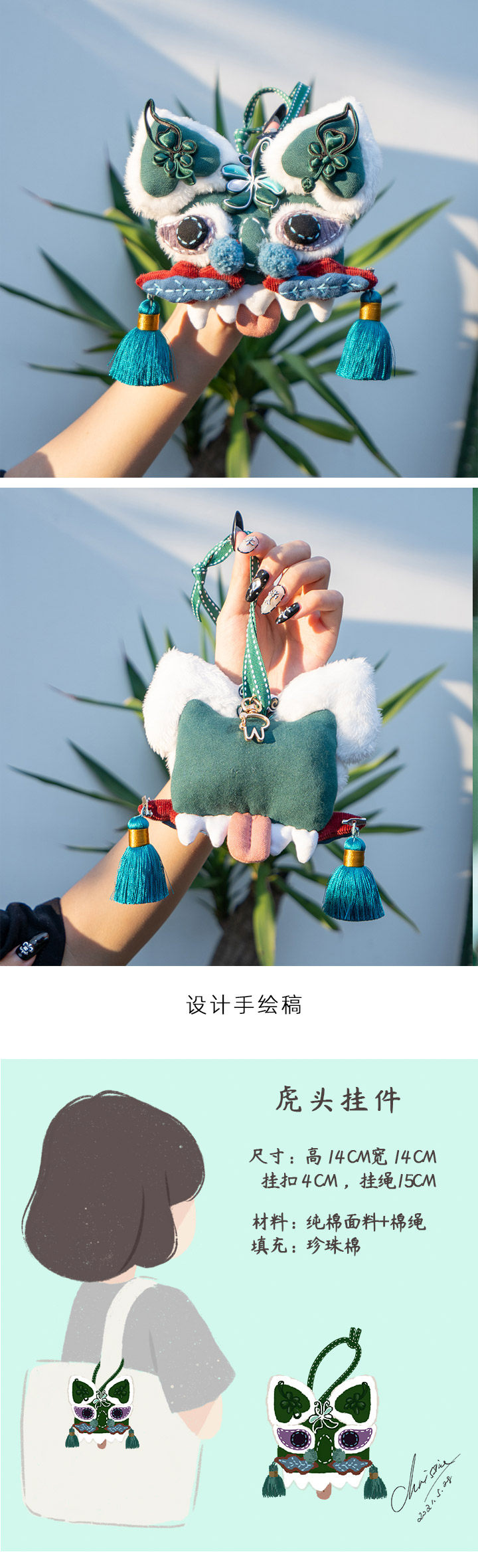 【1.21-2.6停发】芽小七原创国潮风虎头手工缝制背包书包挂件挂饰可爱公仔钥匙扣