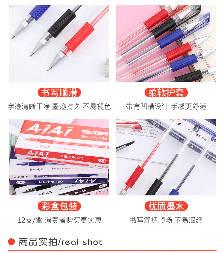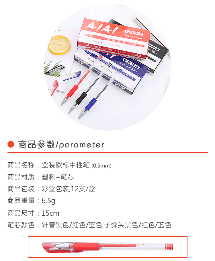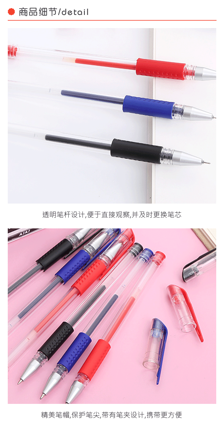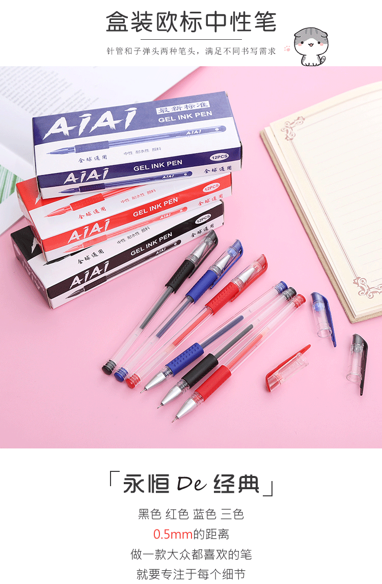 黑/蓝/红 中性笔0.5mm子弹头水笔 针管办公文具签字笔学习用品 /支