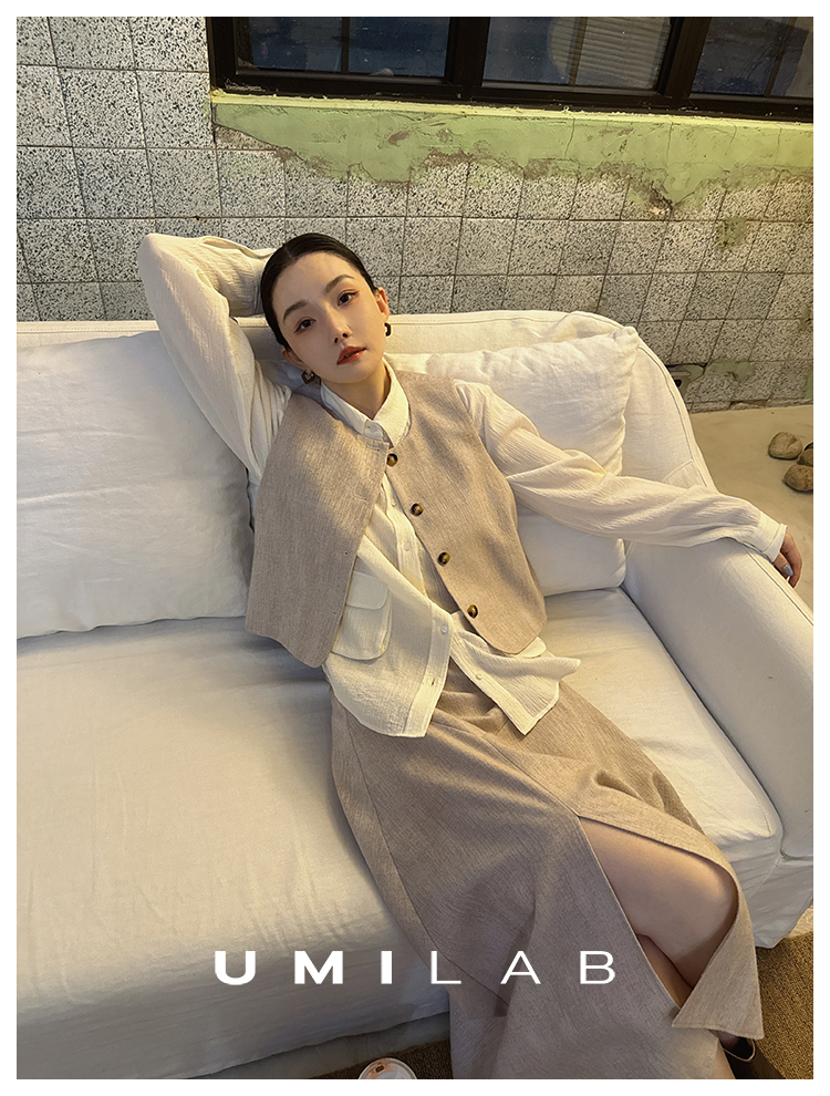 UMILAB|浮影*美利奴羊毛+长绒棉 复古马甲/长裤/半裙套装E263W