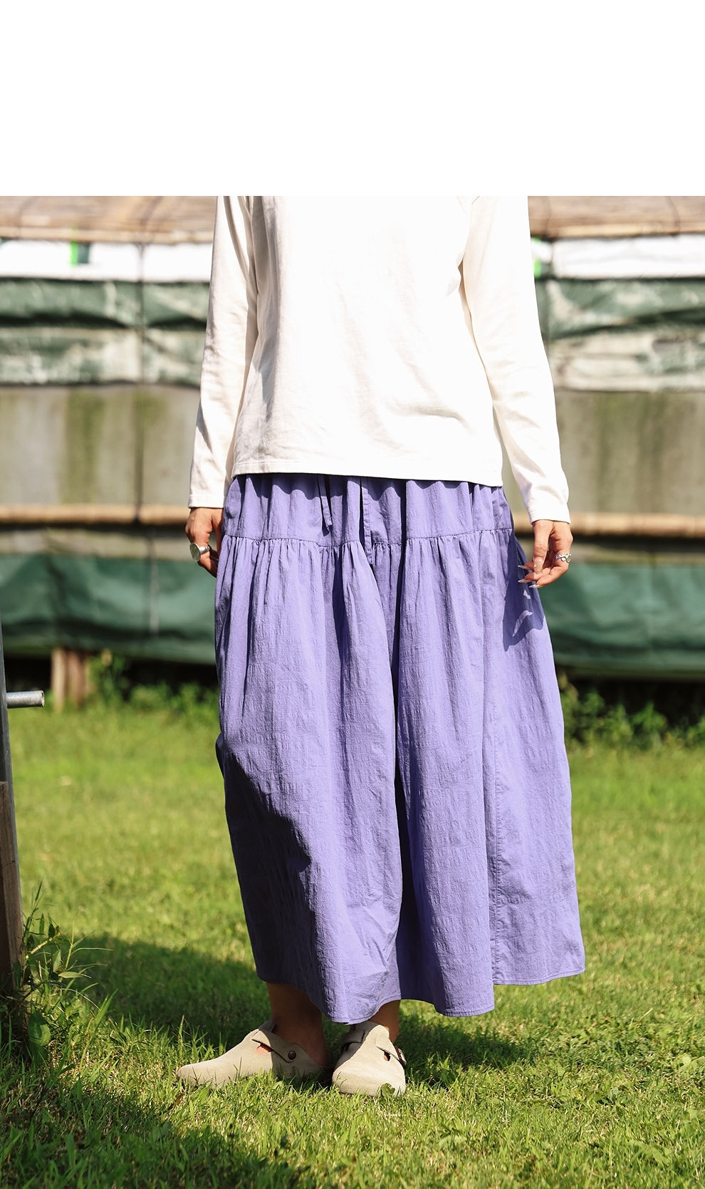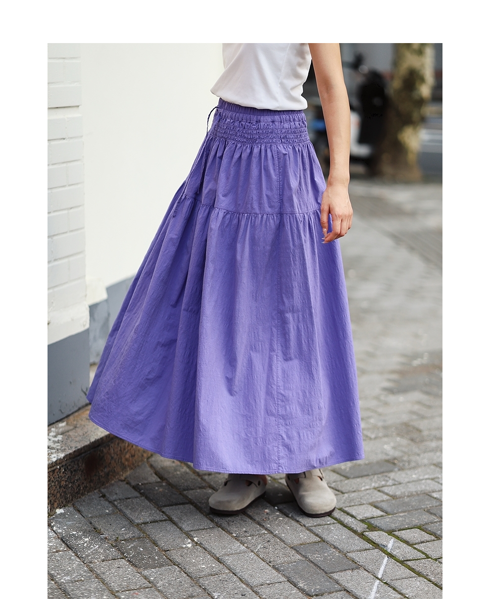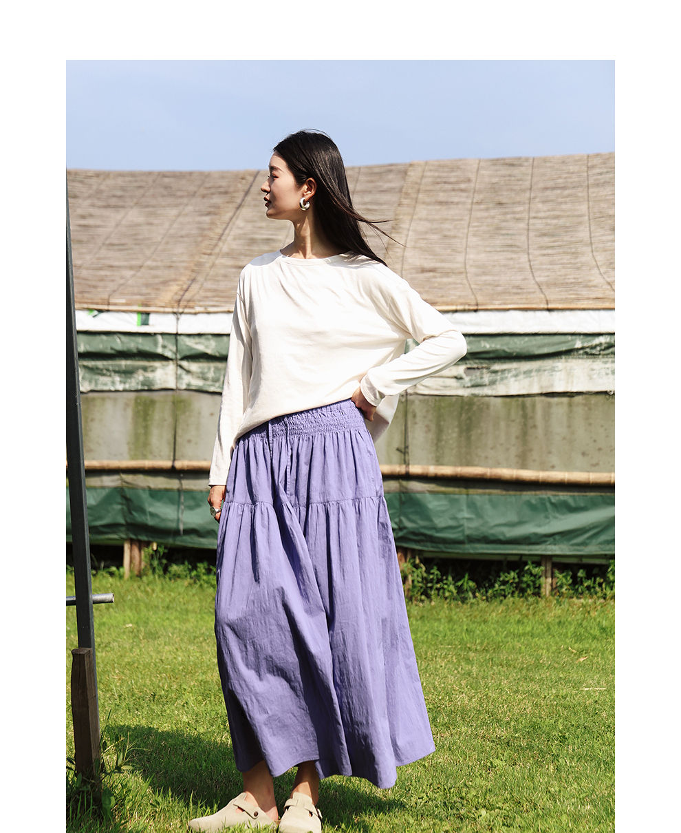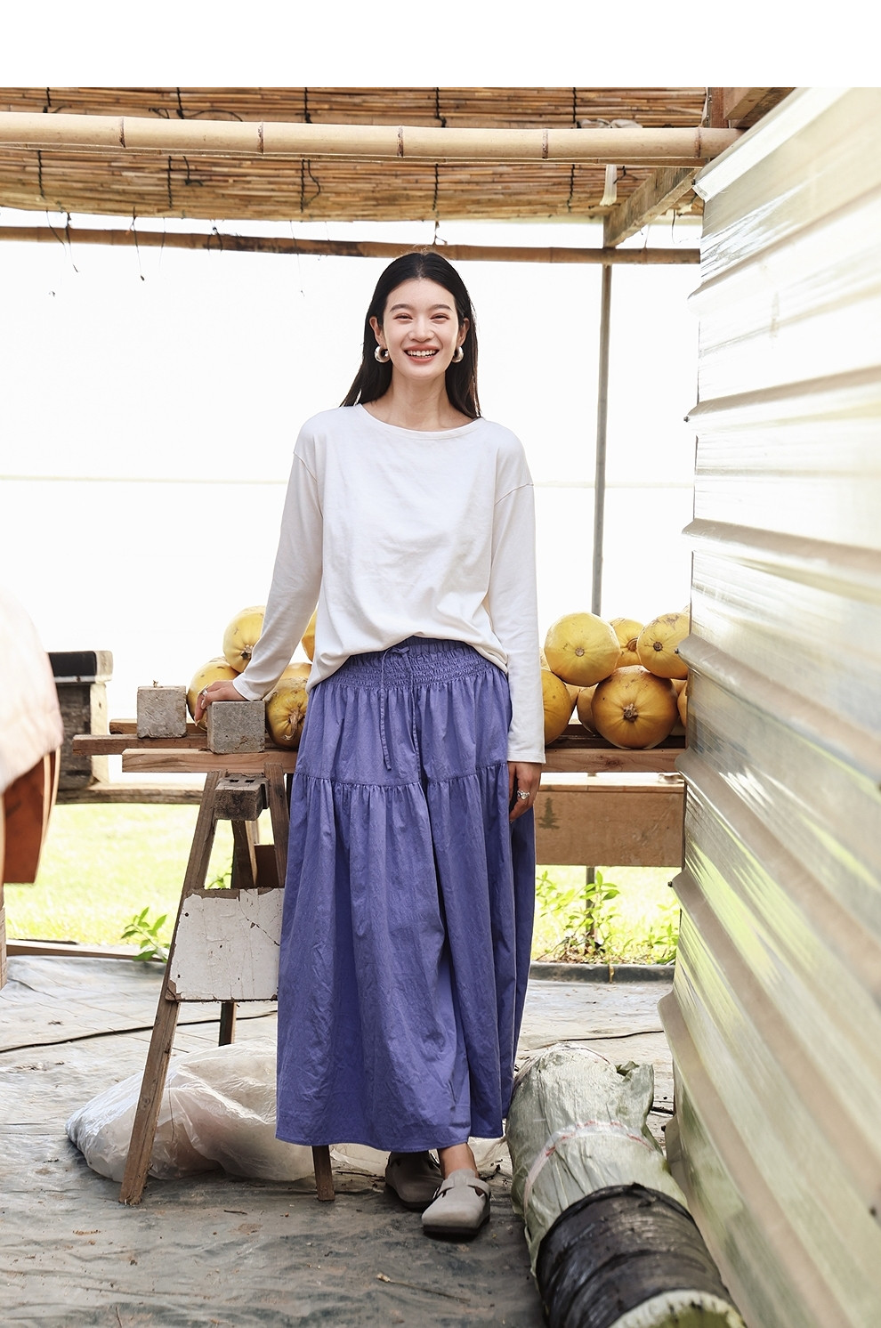 绽放旅行女装488朵/竹节肌理棉抽皱松紧腰半身中长裙半身裙女秋季