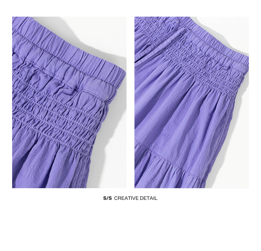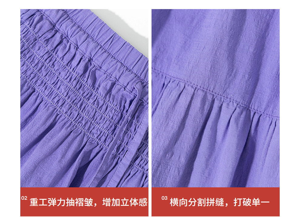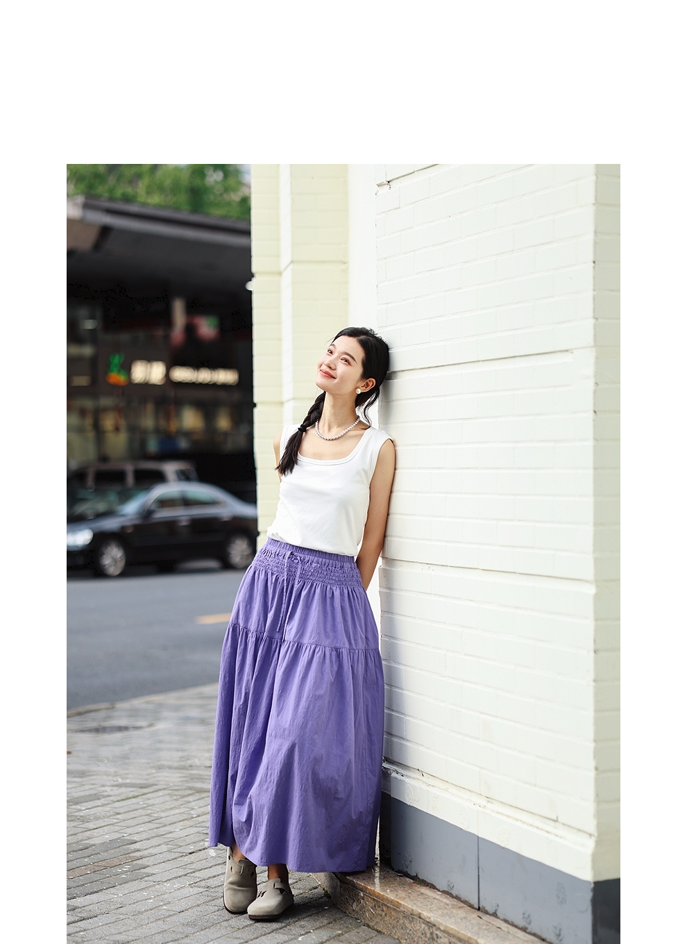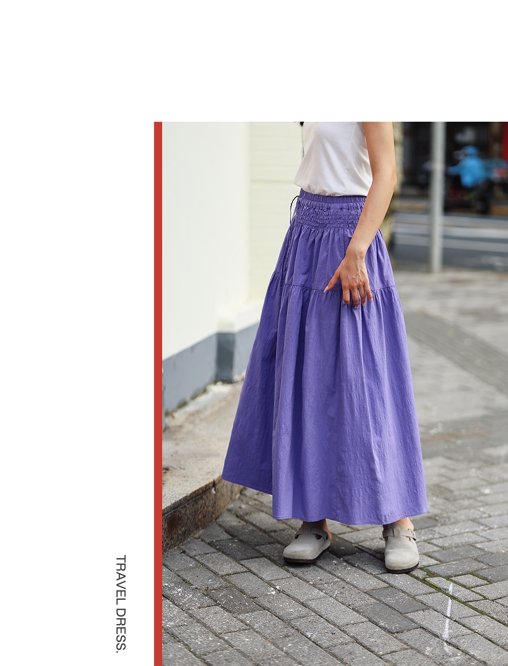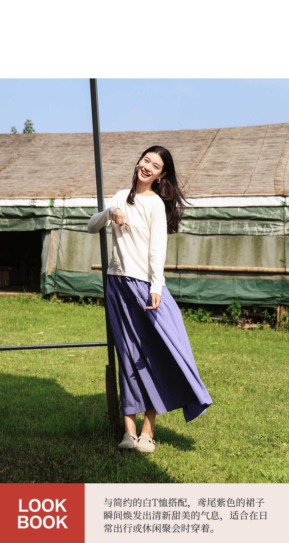 绽放旅行女装488朵/竹节肌理棉抽皱松紧腰半身中长裙半身裙女秋季