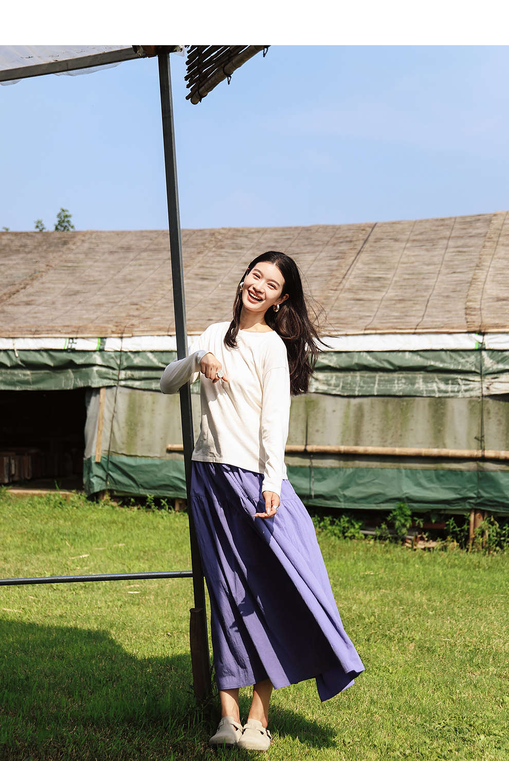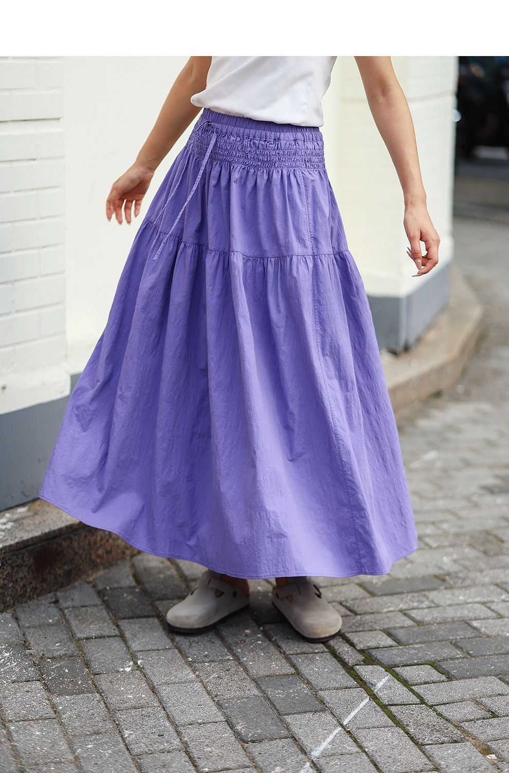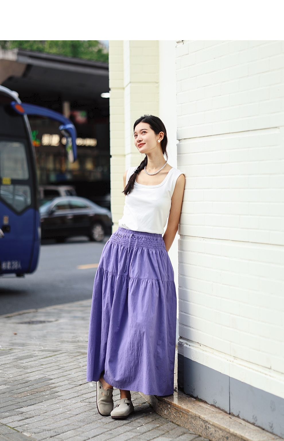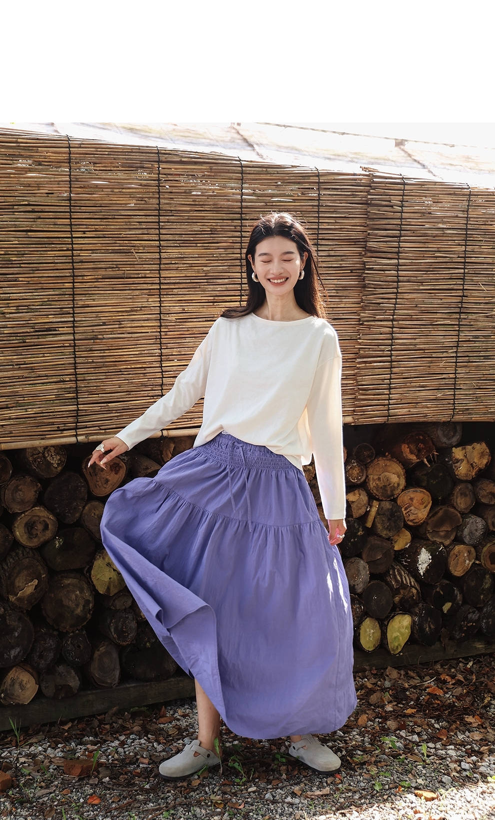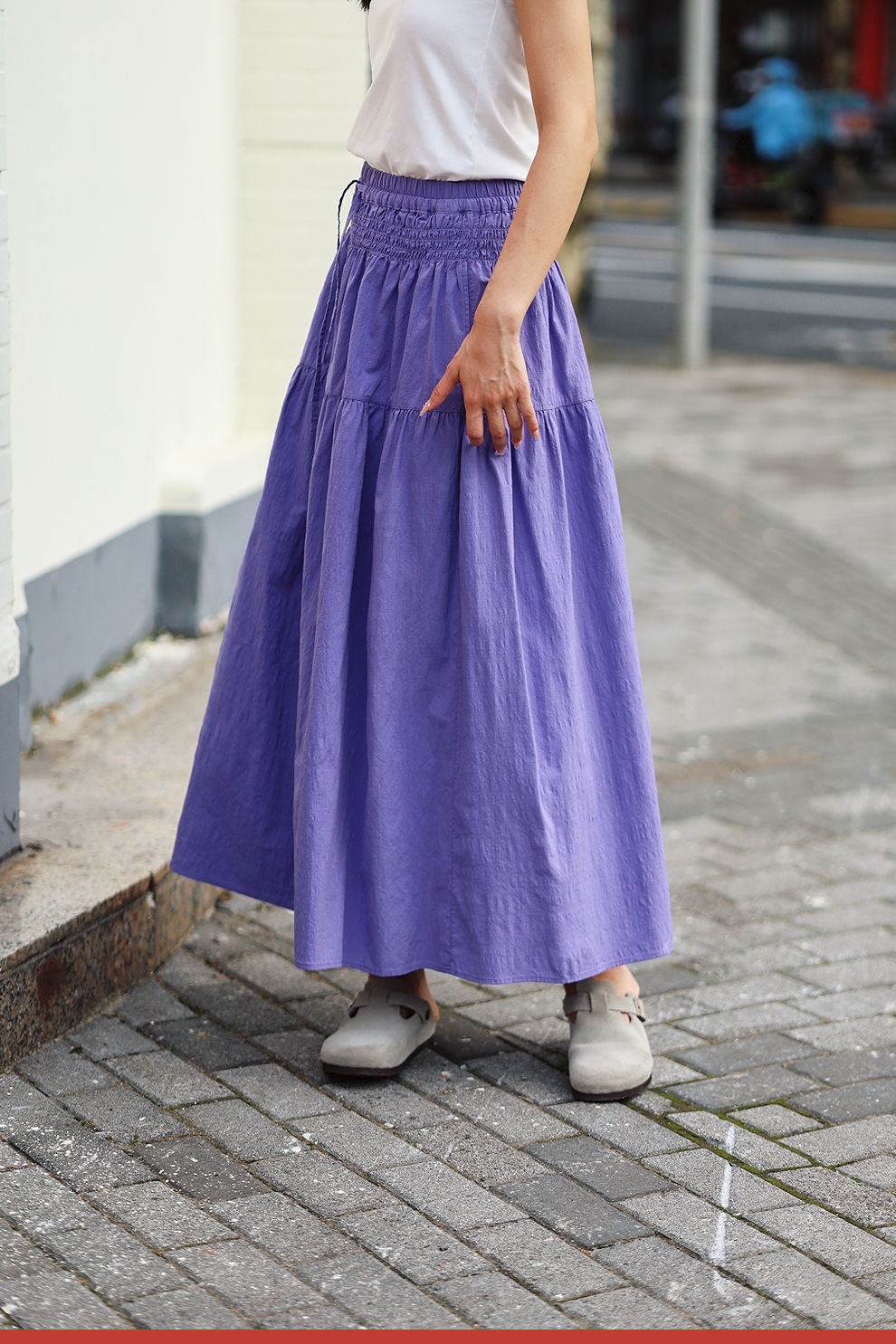 绽放旅行女装488朵/竹节肌理棉抽皱松紧腰半身中长裙半身裙女秋季