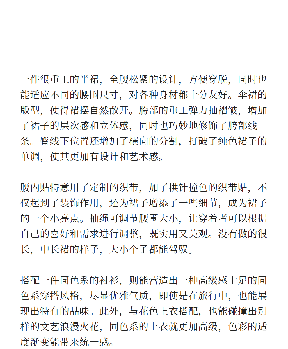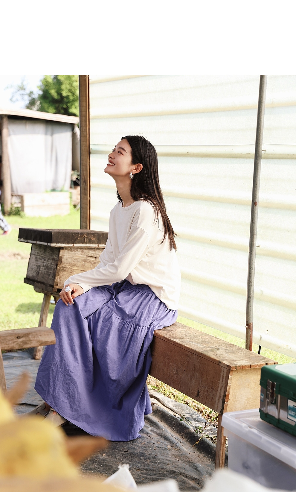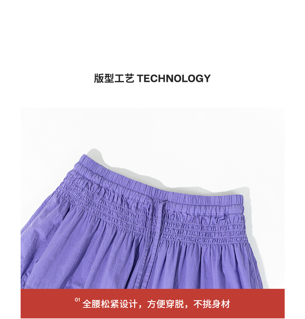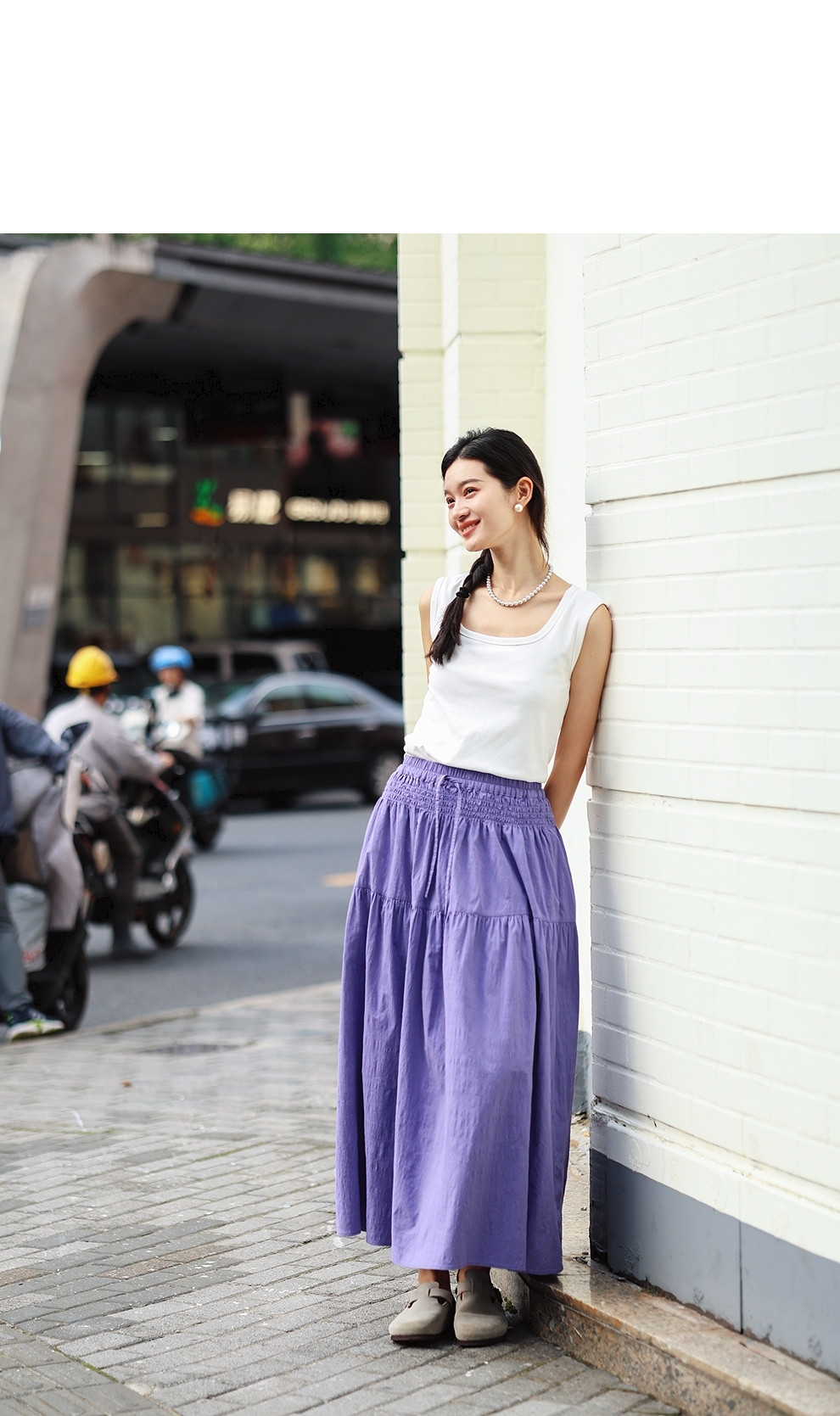 绽放旅行女装488朵/竹节肌理棉抽皱松紧腰半身中长裙半身裙女秋季