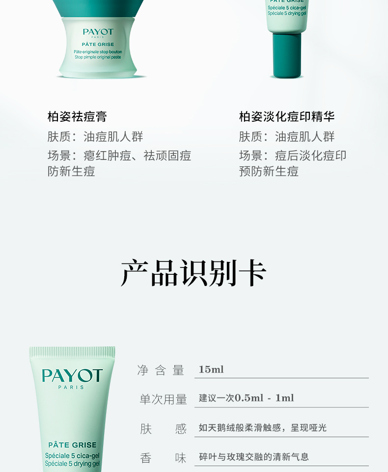 法国进口payot净痘凝胶淡化痘印积雪草祛痘精华乳15ml