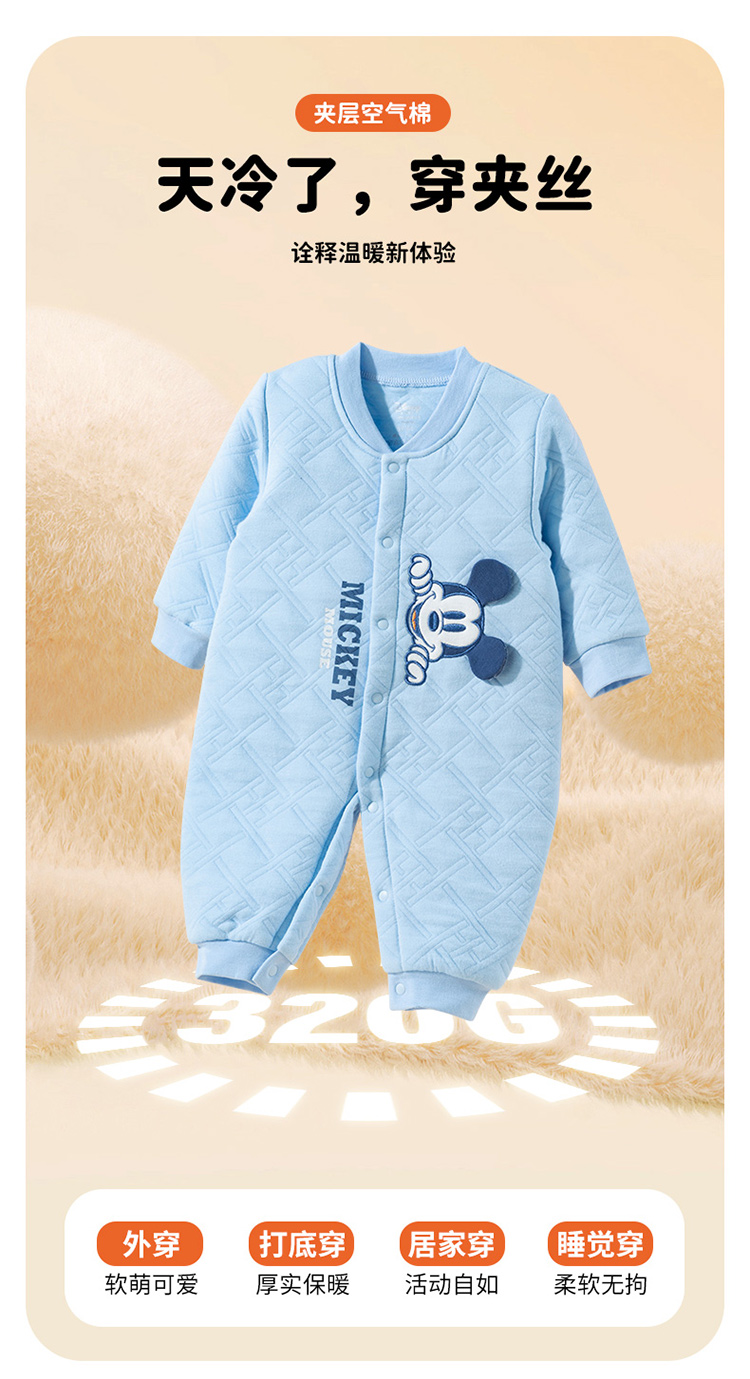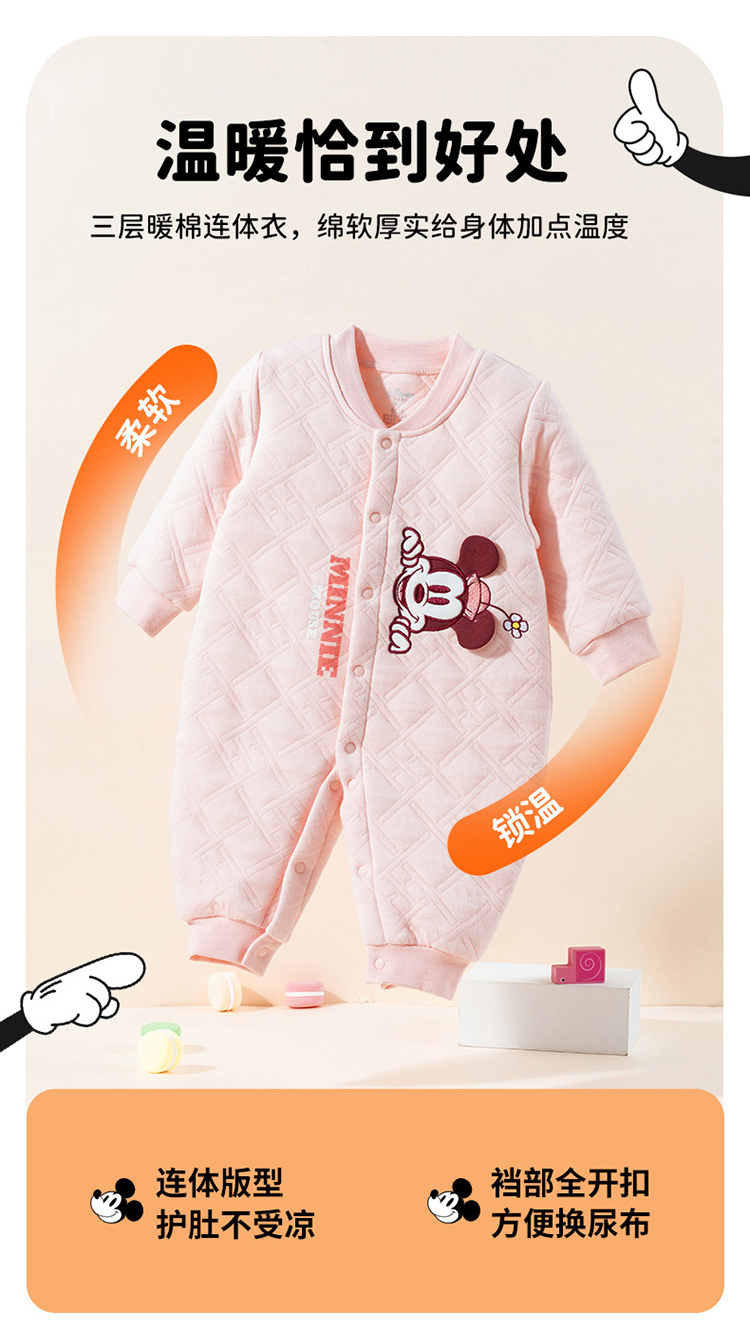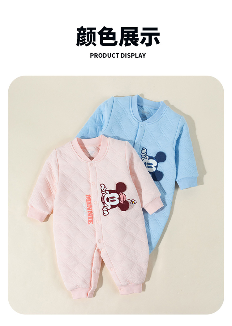 Disney/迪士尼【夹棉保暖】24秋男女宝宝暖棉连体衣薄棉哈衣卡通爬爬服ZD4DL017