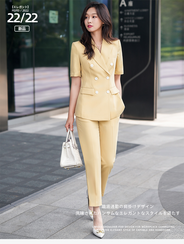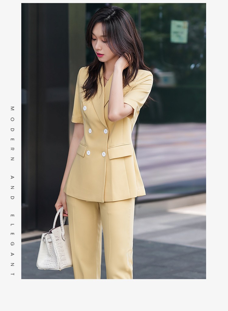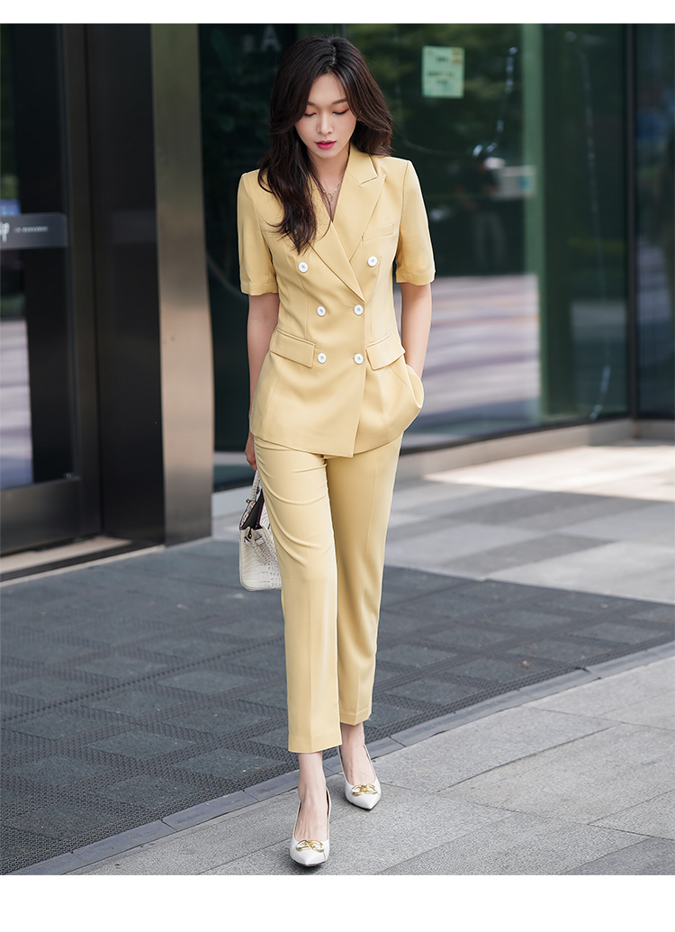 黄色西装套装女夏季薄款时尚双排扣高级感职业装气质女神范
