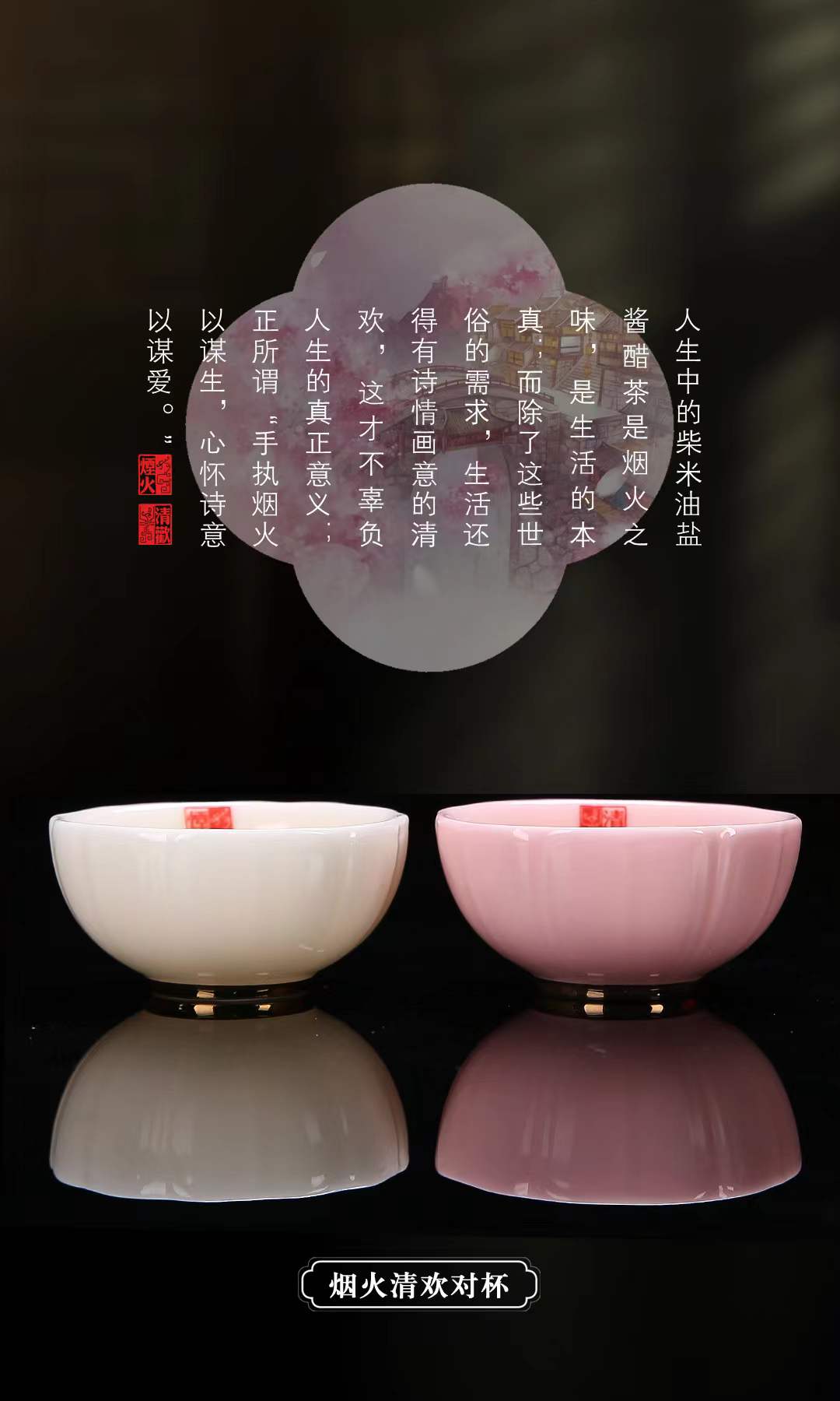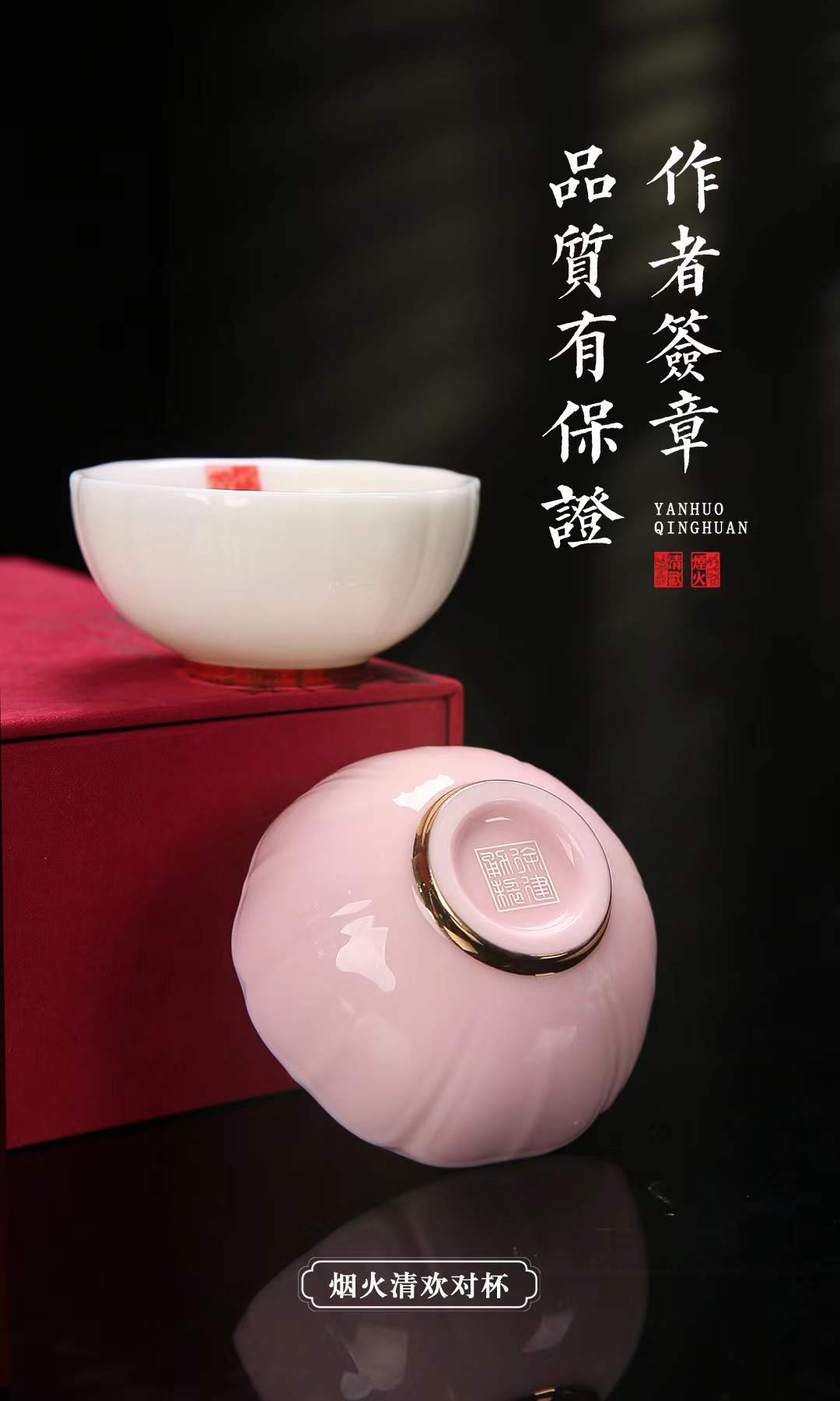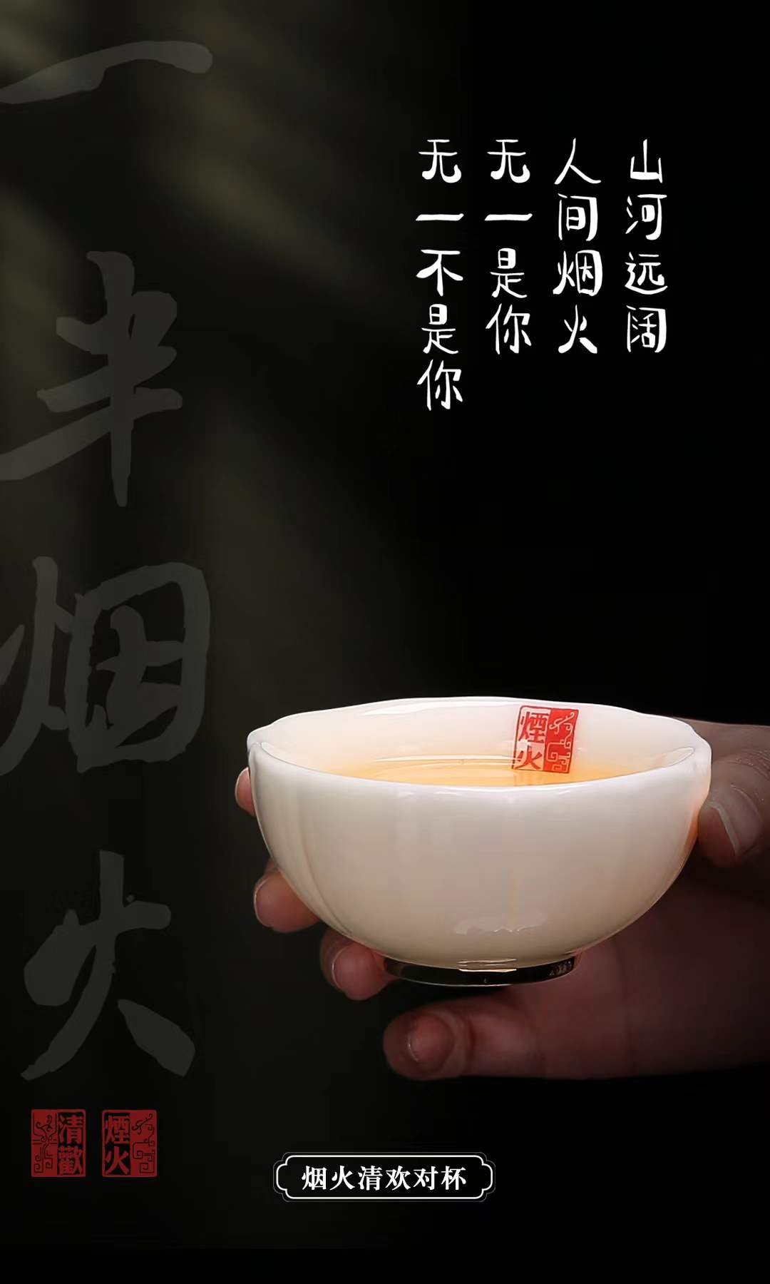 【烟火清欢对杯】人生一半烟火一半清欢,羊脂玉瓷 温润通透,作者签章 品质保证,珍藏品鉴 送礼臻品