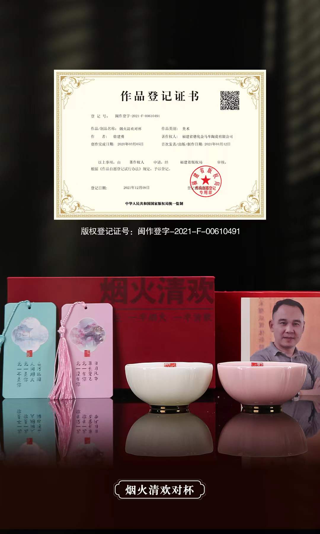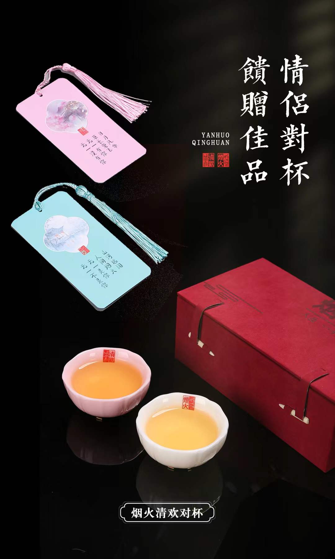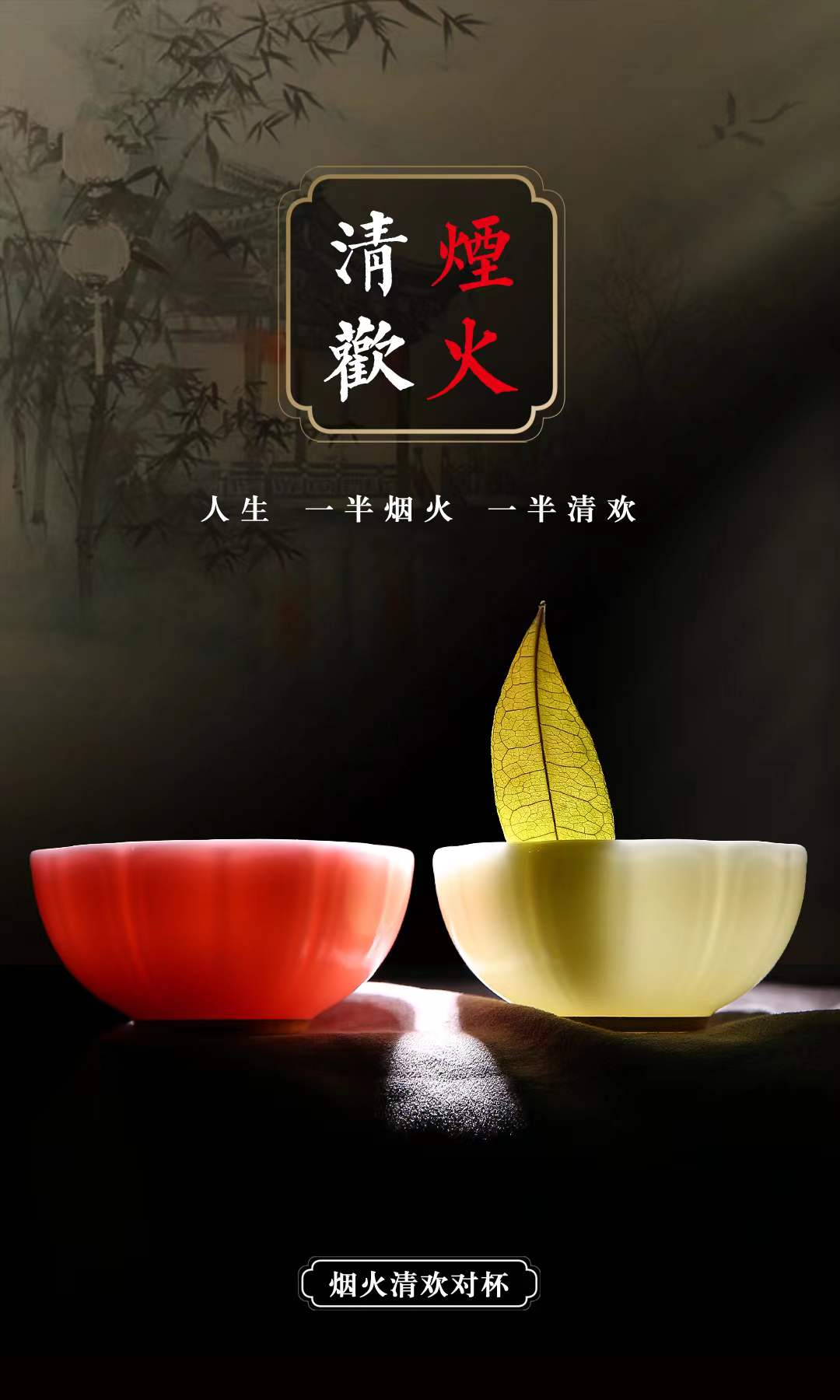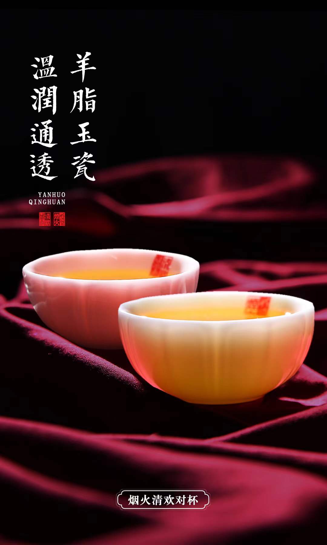 【烟火清欢对杯】人生一半烟火一半清欢,羊脂玉瓷 温润通透,作者签章 品质保证,珍藏品鉴 送礼臻品