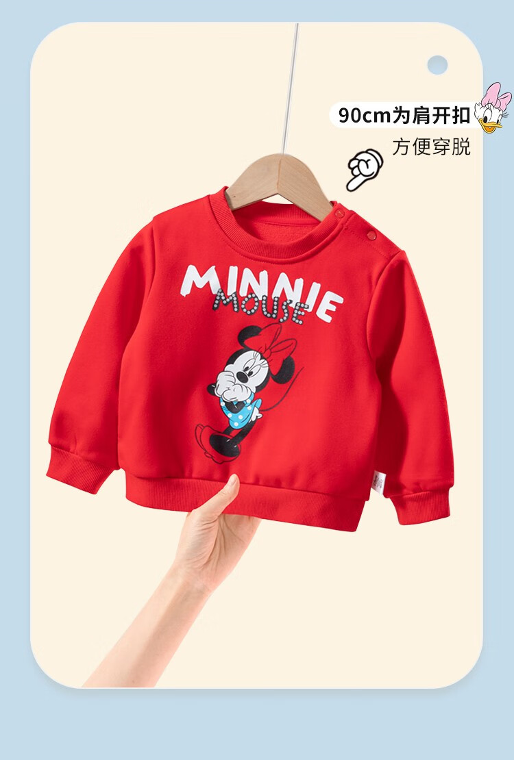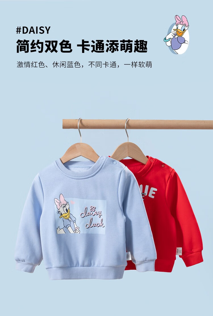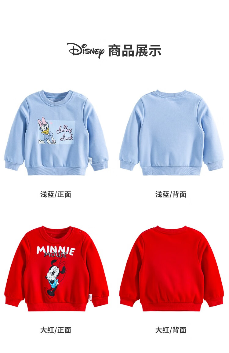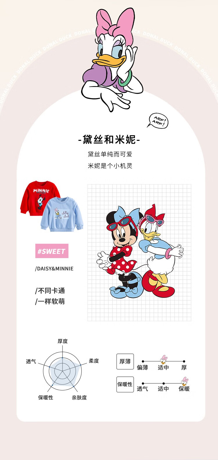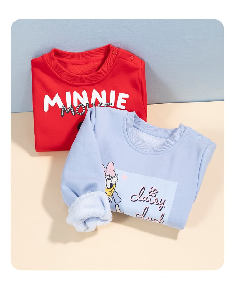 【商场同款】迪士尼童装女童卫衣卡通米妮黛丝简约双色卫衣加绒保暖秋新品214DS0196