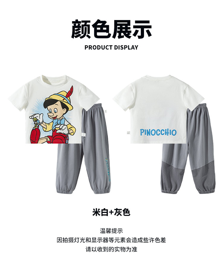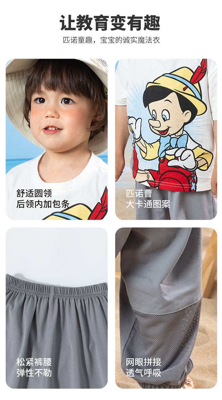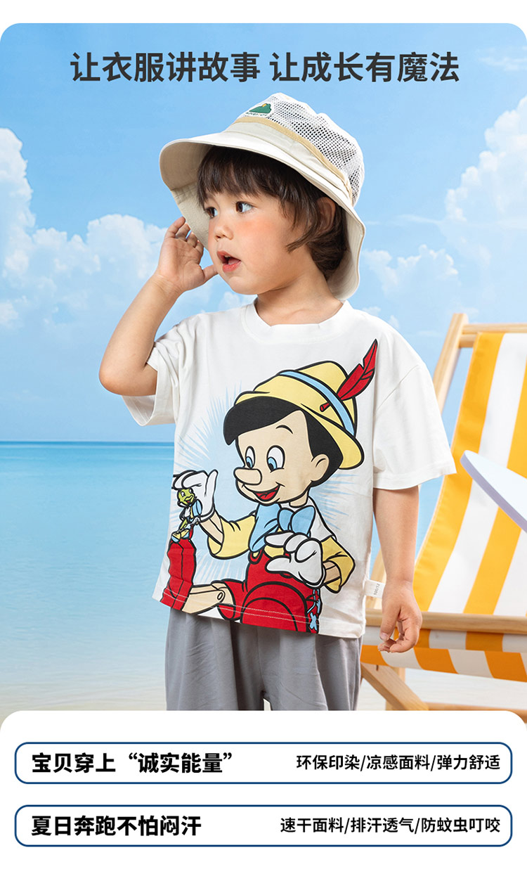 迪士尼【匹诺曹IP凉感套装】25夏新款男童冰感短袖T恤透气短裤套装ZD2ET029