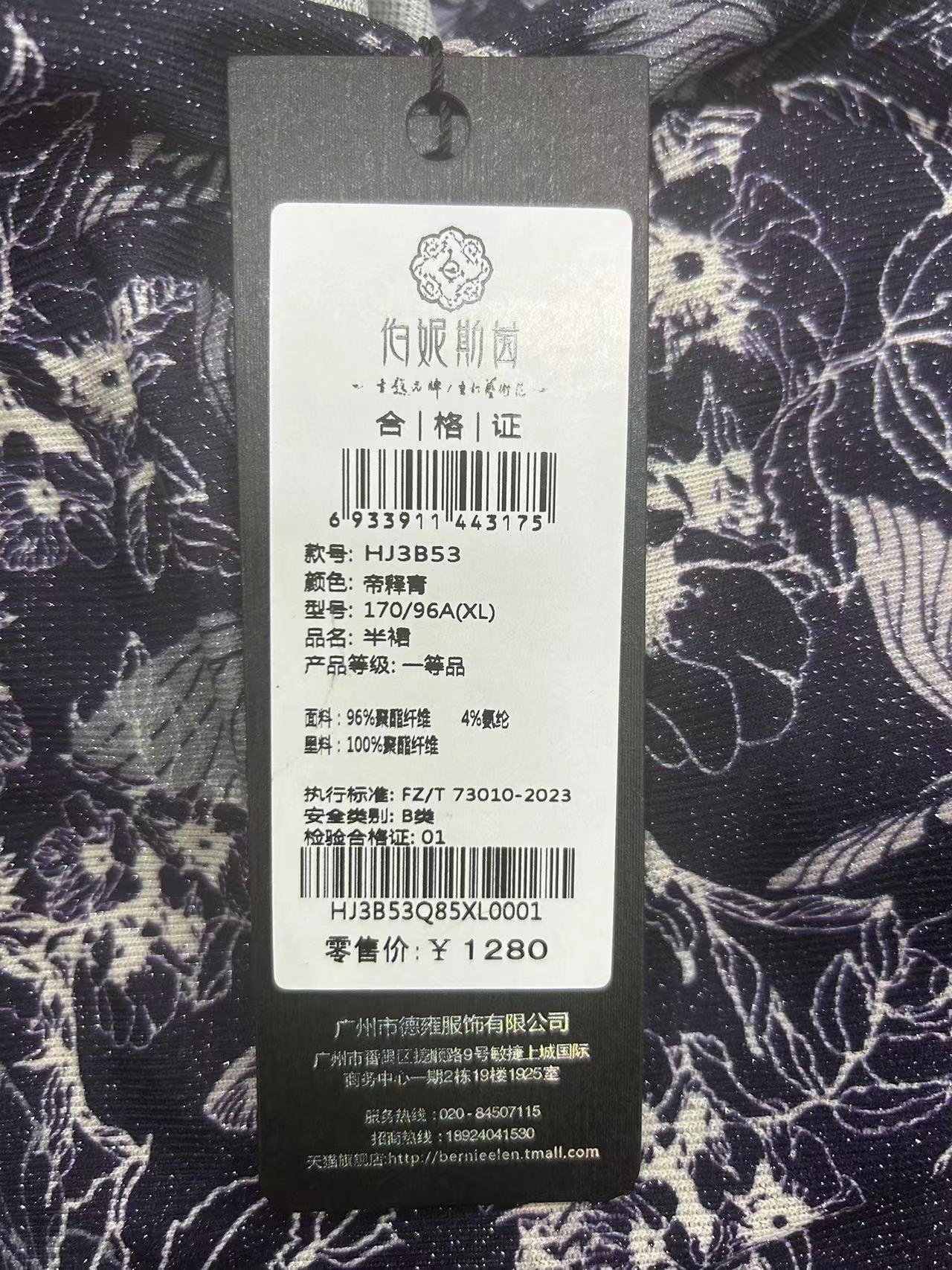 HJ3B53_帝释青色_半身裙_春秋_轻奢印花高腰遮胯显瘦通勤 A 字裙_高级女装_BERNIEELEN 伯妮斯茵