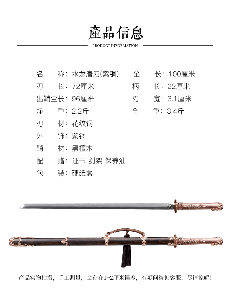 水龙唐横刀剑汉唐宝剑龙泉沈广隆宝剑一体刀剑防身冷兵器 未开刃