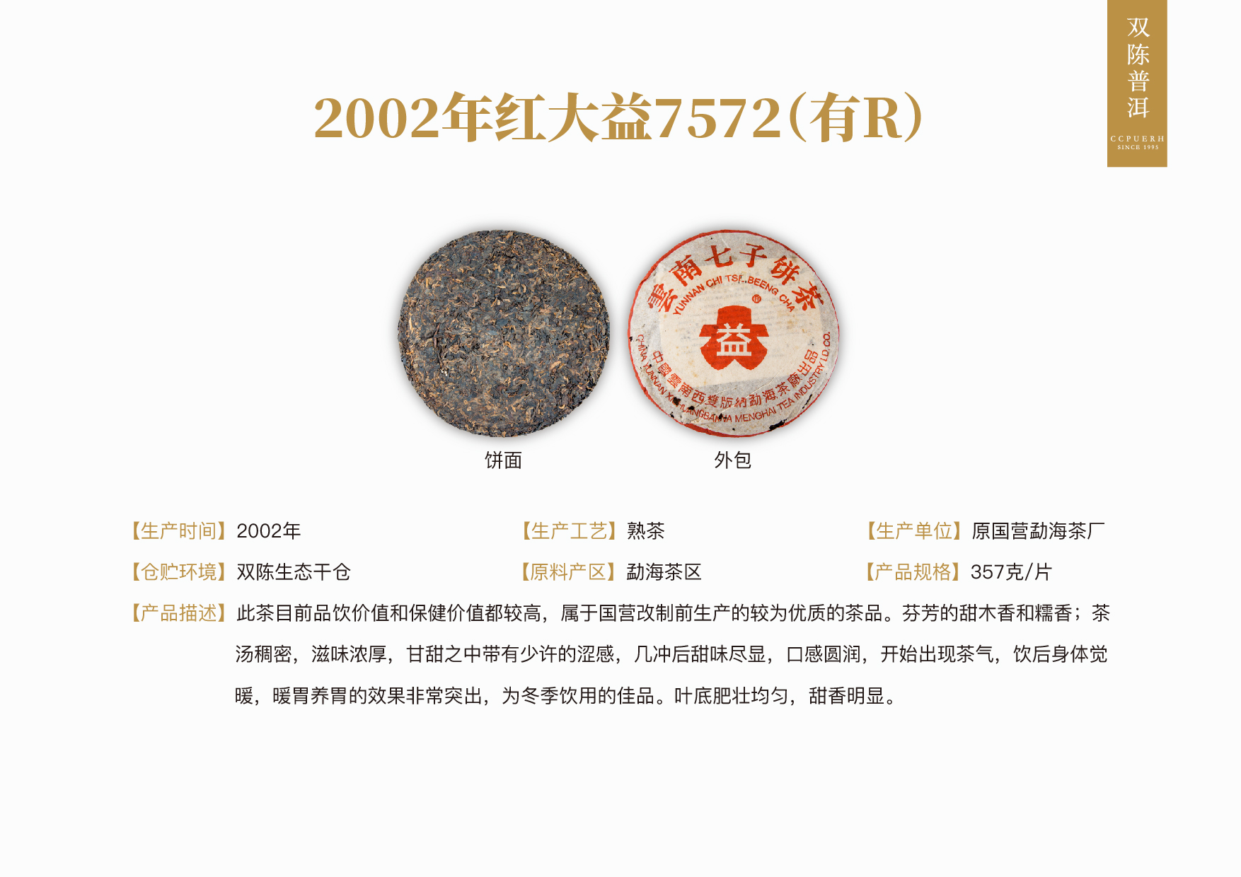 2002年红大益7572(有R)60克【用于展示,勿拍】