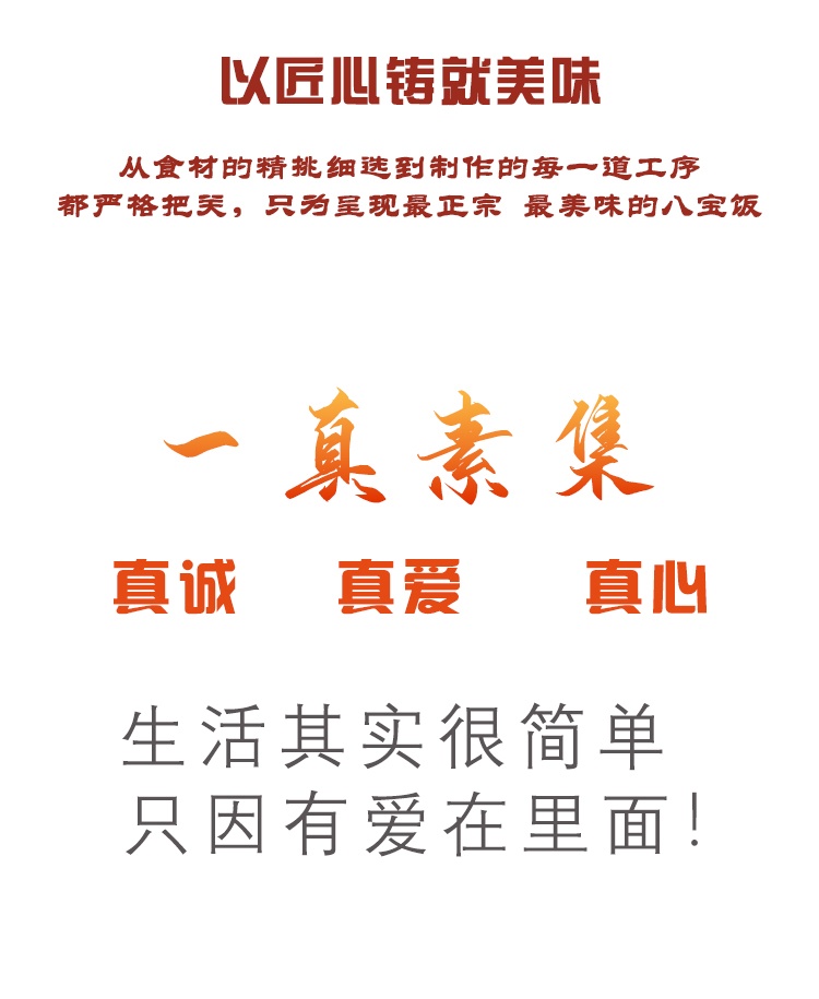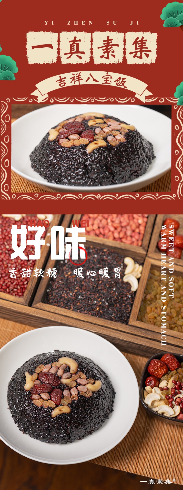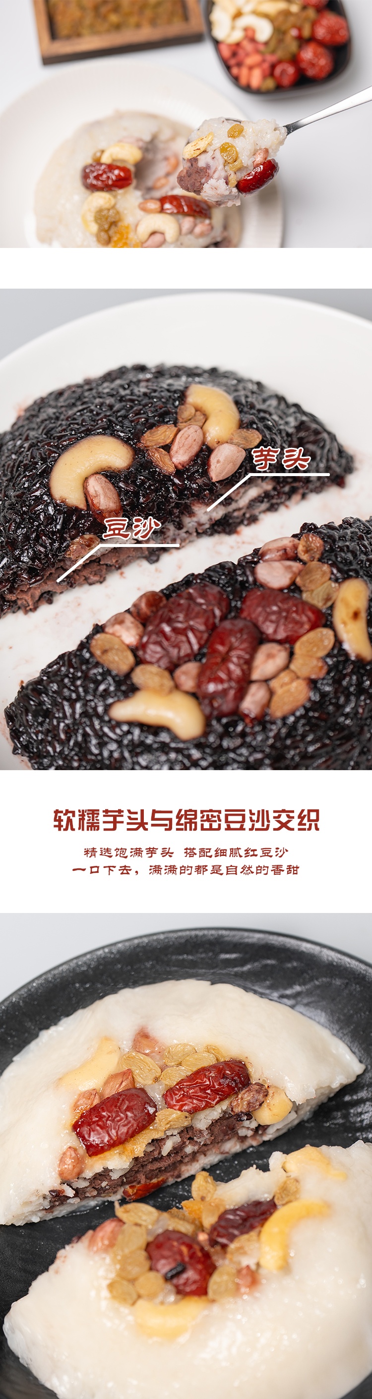 吉祥八宝饭,香糯清甜,老品种种植,手工精制双层馅,红豆香芋,馅料满满,每一口都是幸福滋味!