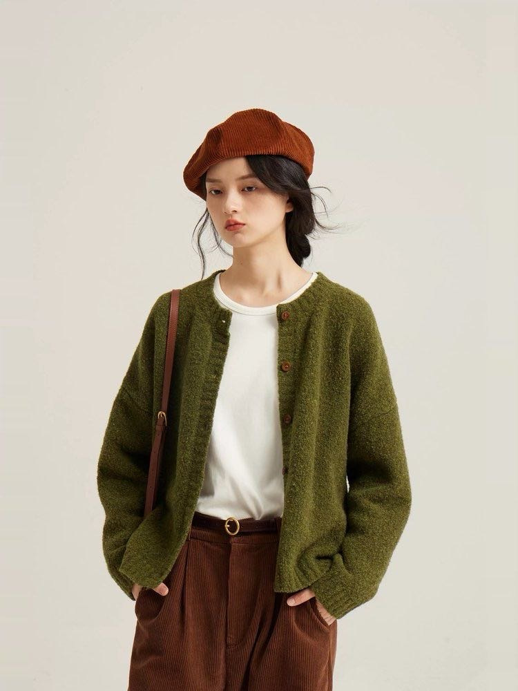 【Max Daex 苔藓绿针织外套】毛衣开衫复古又显白,超级正!超级显白的苔藓绿,穿在身上堪比反光板