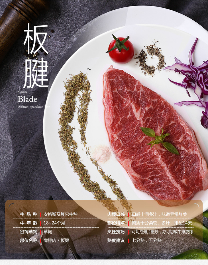 进口原切牛排板腱
