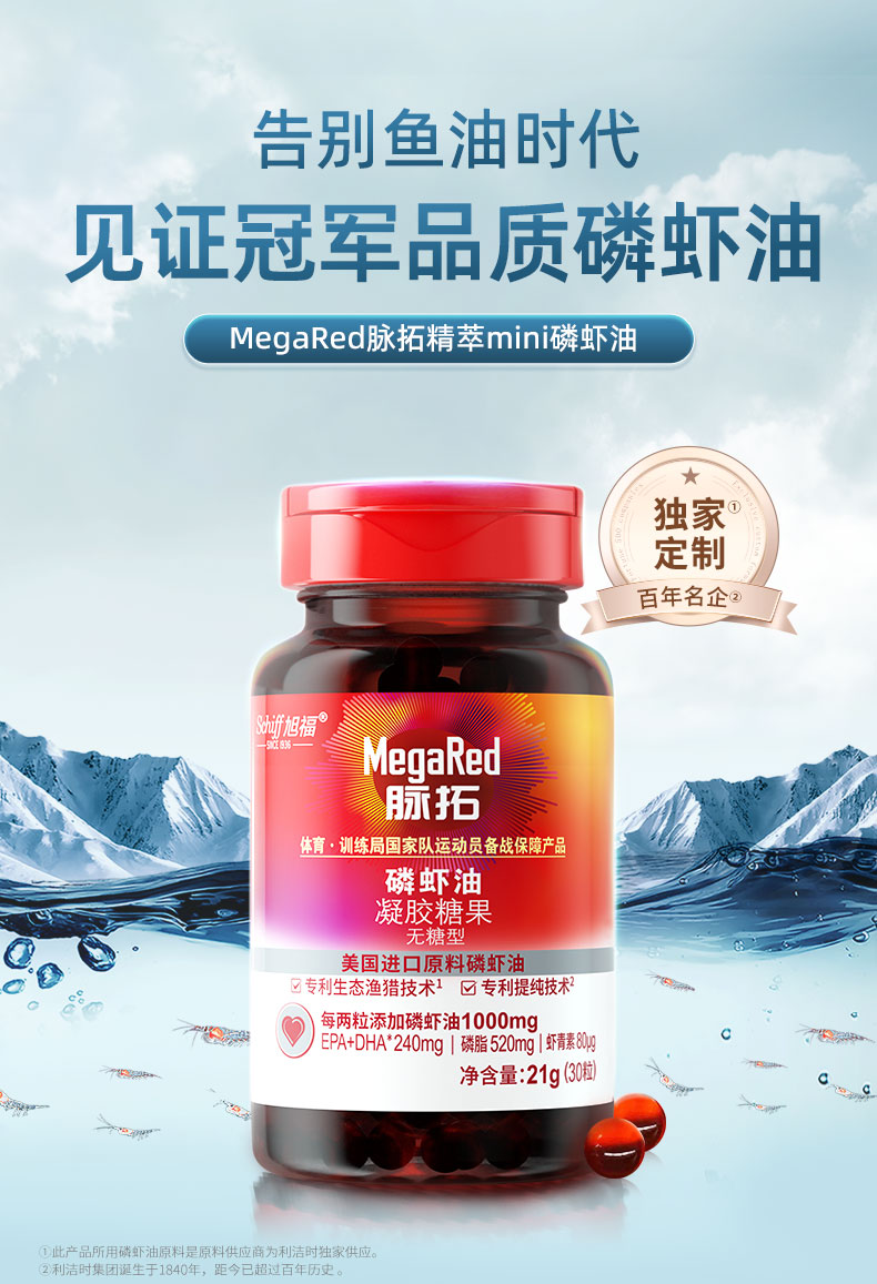 MegaRed 脉拓磷虾油凝胶糖果500mg 30粒