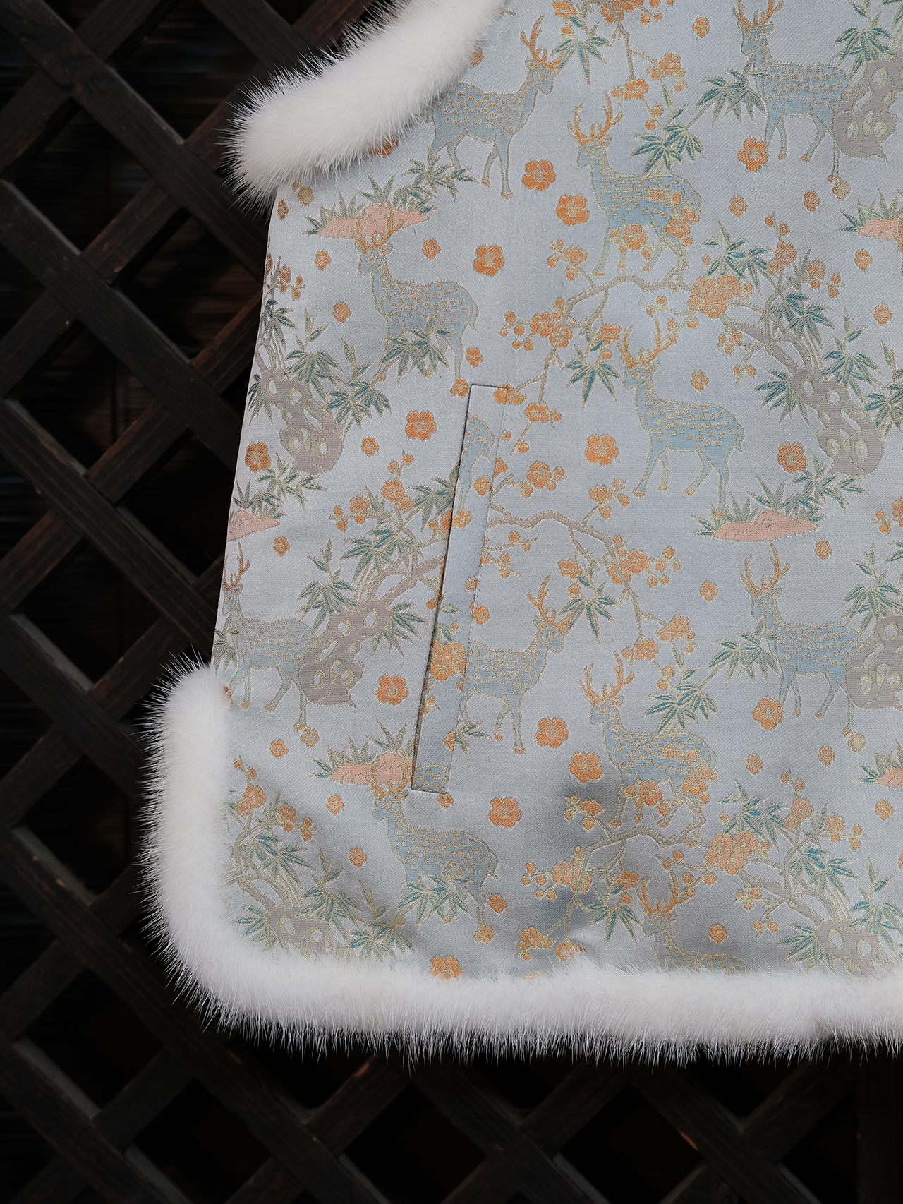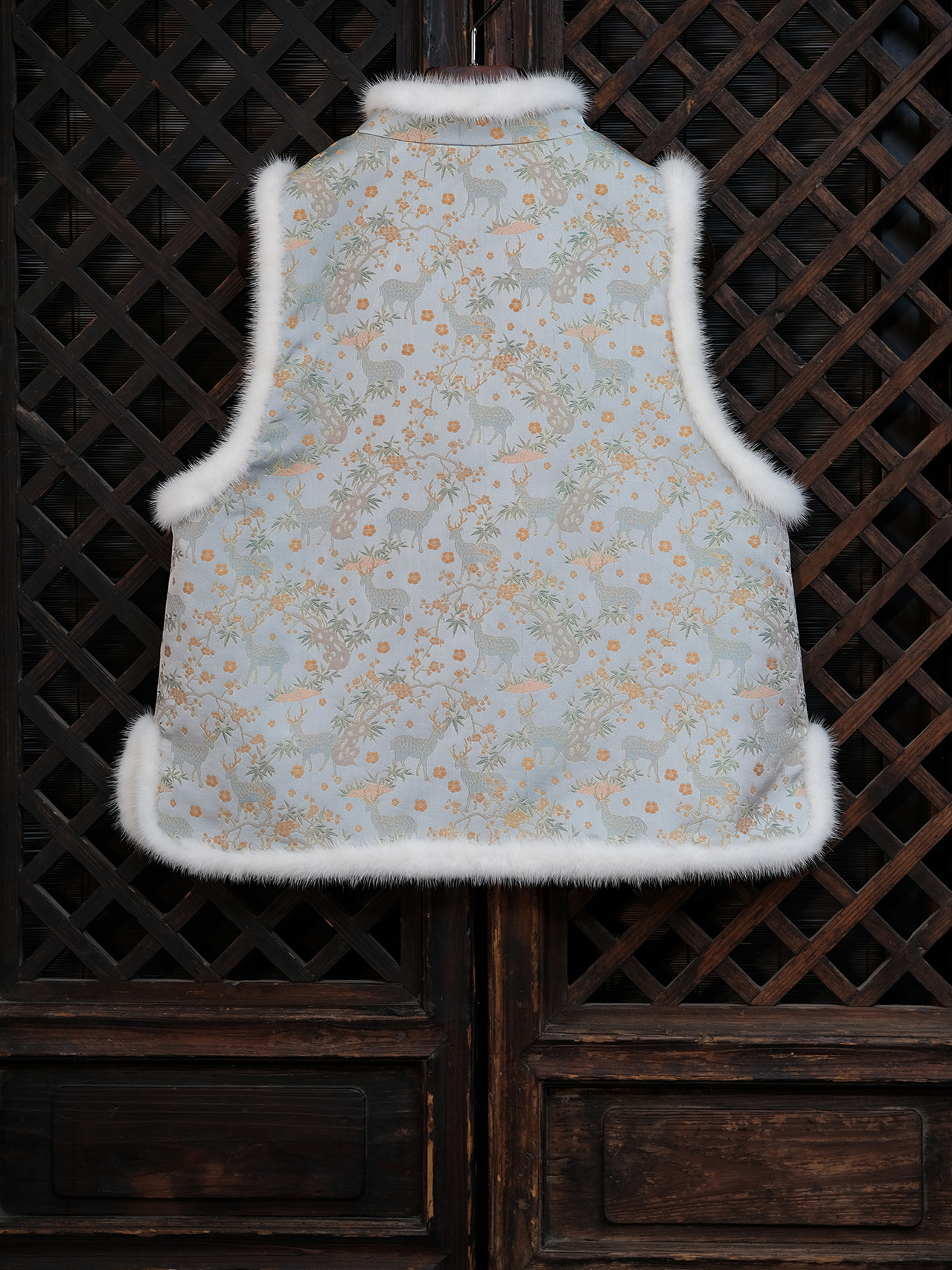 盛唐牡丹 |鹤鹿同春宋锦双面穿马甲