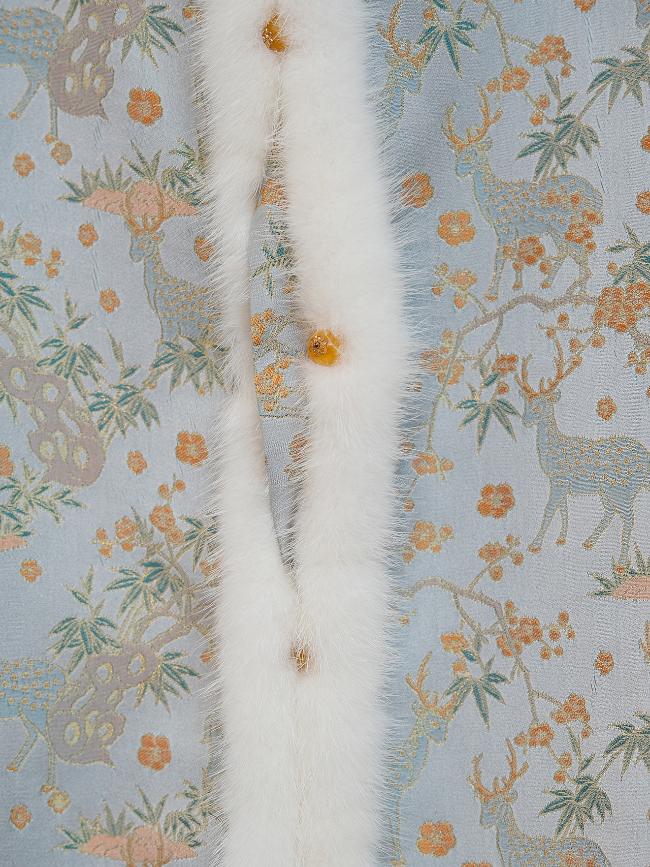 盛唐婧 |中式国风缠枝花水貂毛马甲