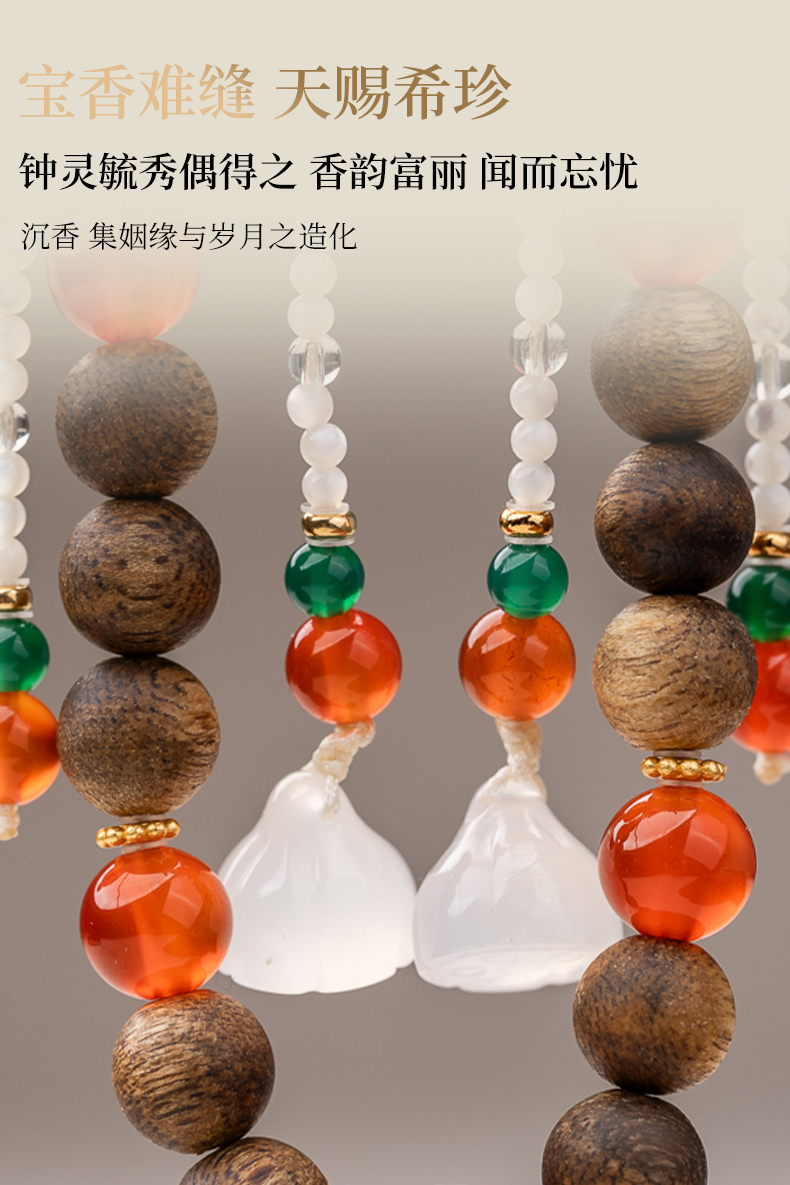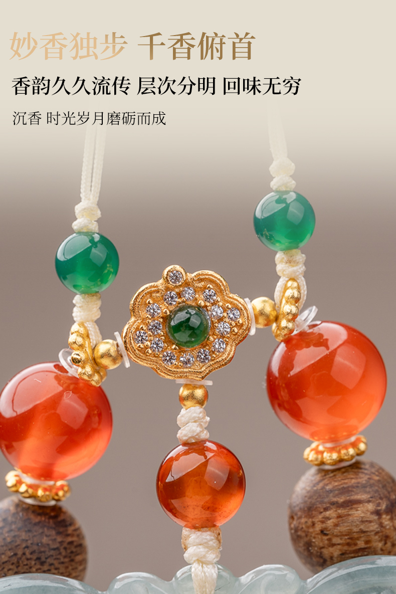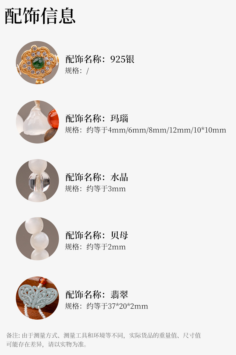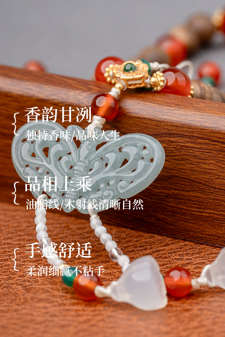 【宫里上新】翡翠福蝶十八子 莺歌绿棋楠白水晶红玛瑙压襟手持