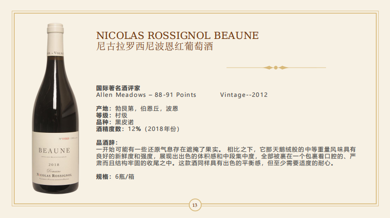 【伯恩高性价比优雅佳酿】Nicolas Rossignol Beaune 2018 750Ml 尼古拉罗西尼波恩红葡萄酒