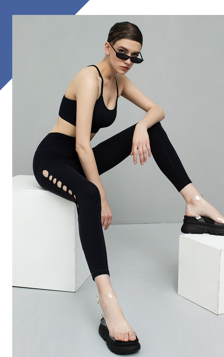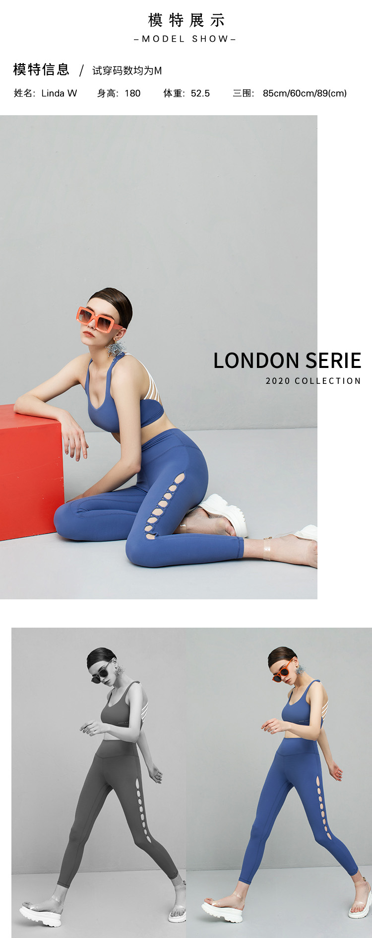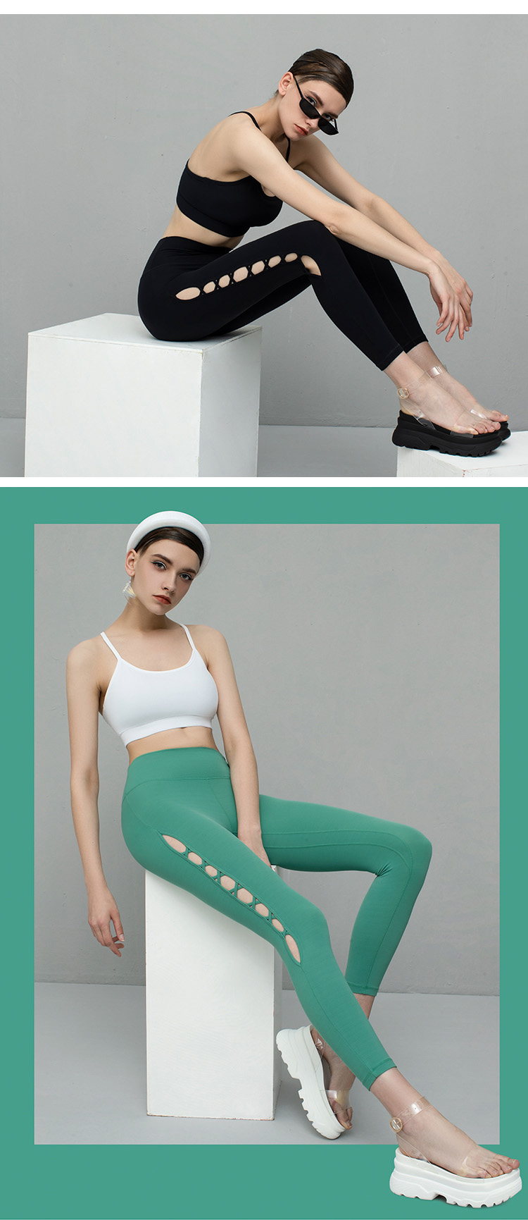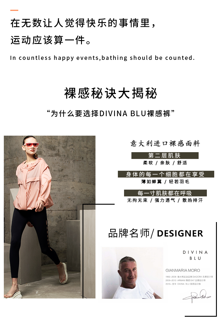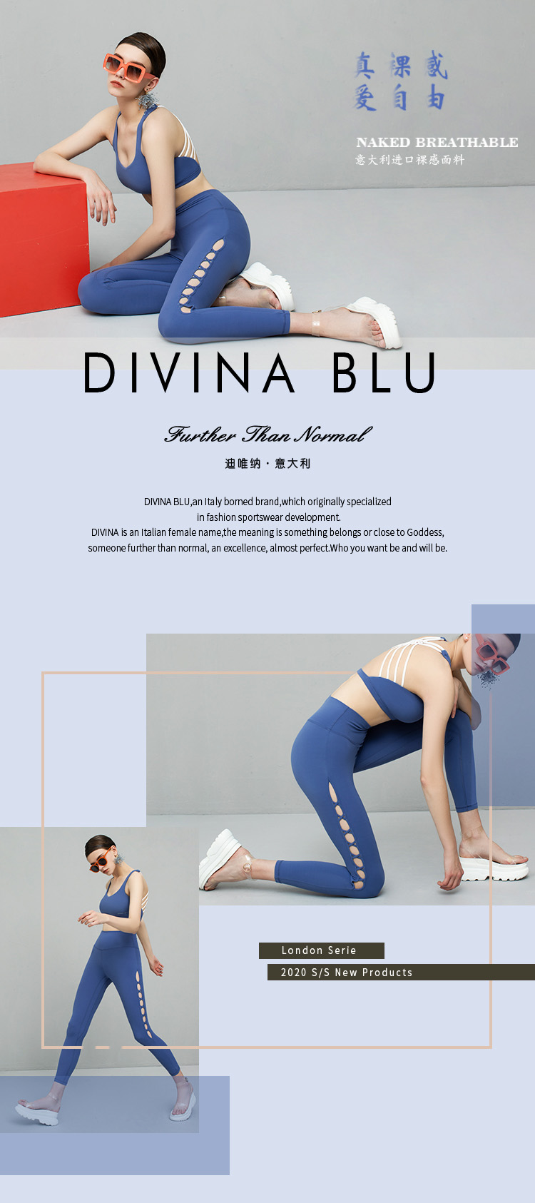 DIVINA BLU伦敦系列知性裸感九分裤时尚镂空花纹瑜伽裤紧身健身裤