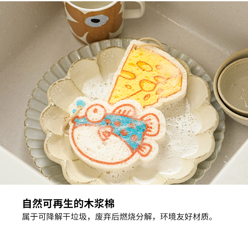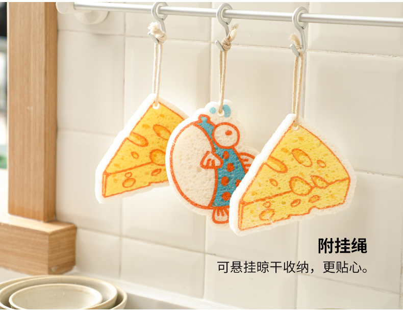 日本霜山木浆棉洗碗海绵可悬挂清洁海绵擦可爱百洁布厨房清洁工具
