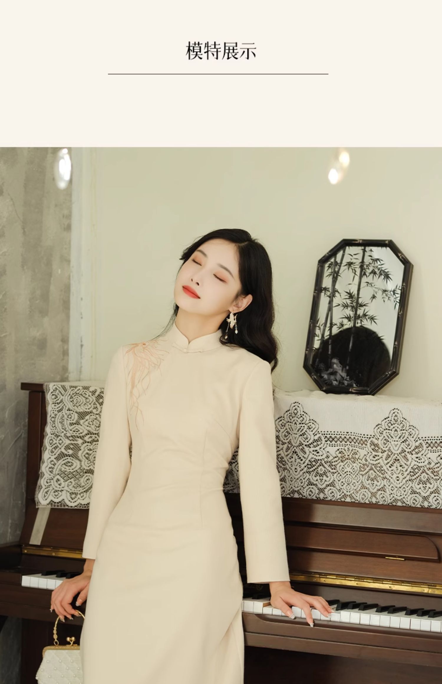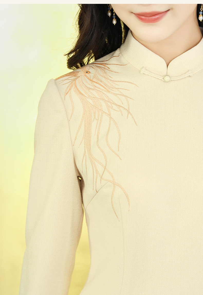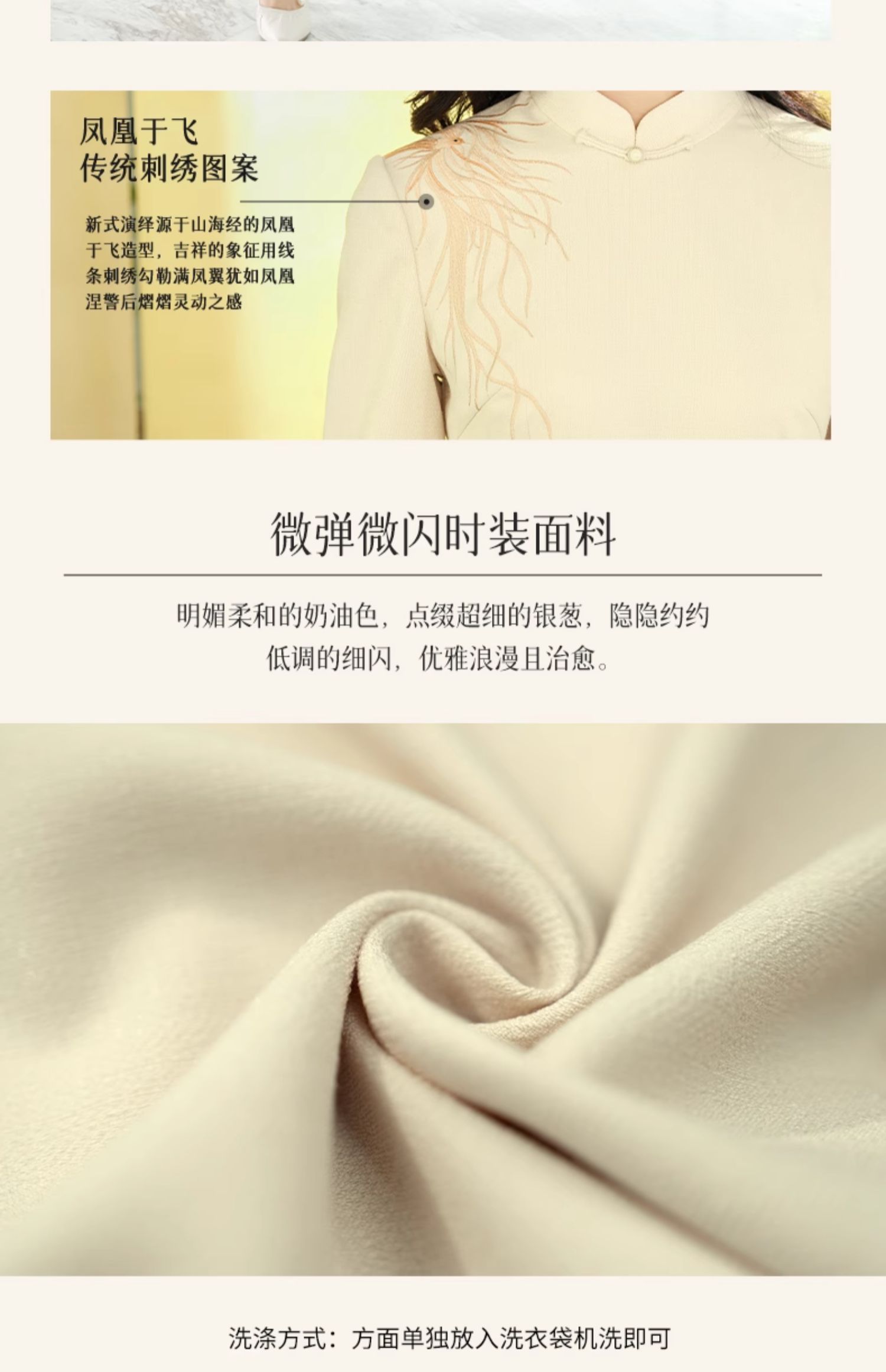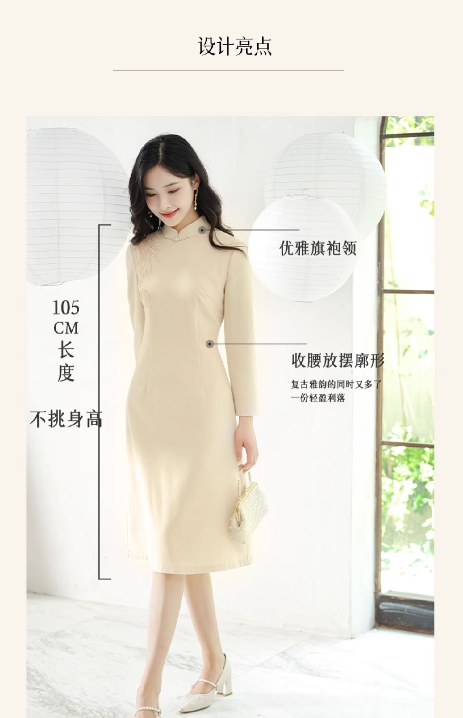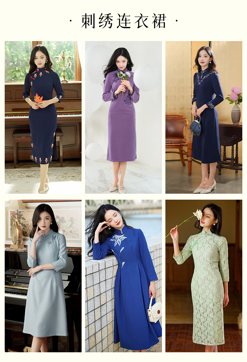 逸红颜 停云 2025秋冬新款A摆刺绣中式改良旗袍显瘦职业连衣裙女
