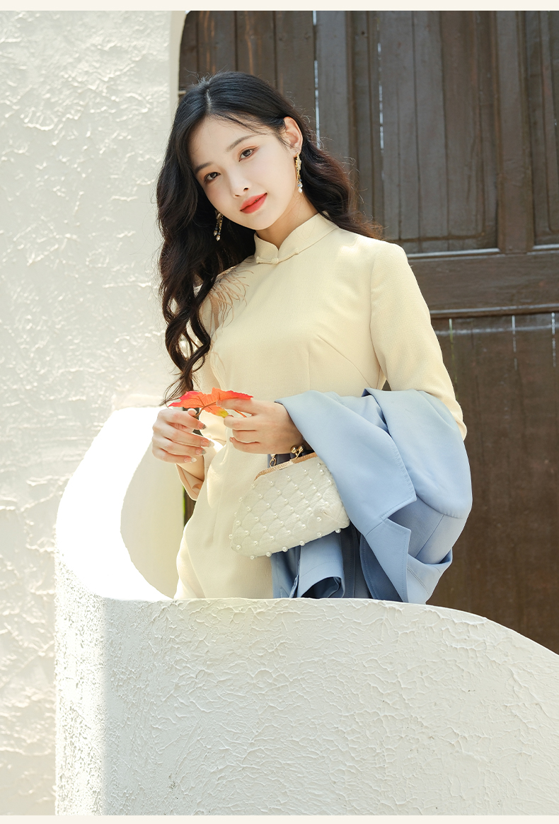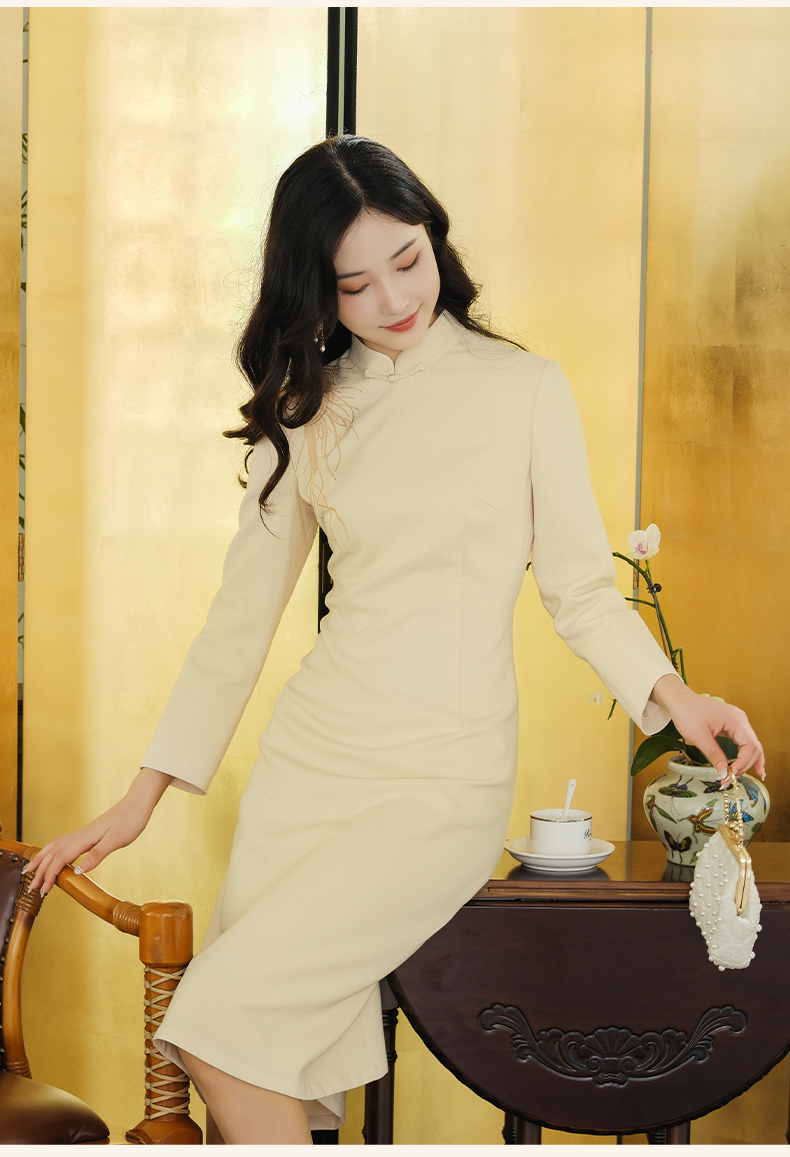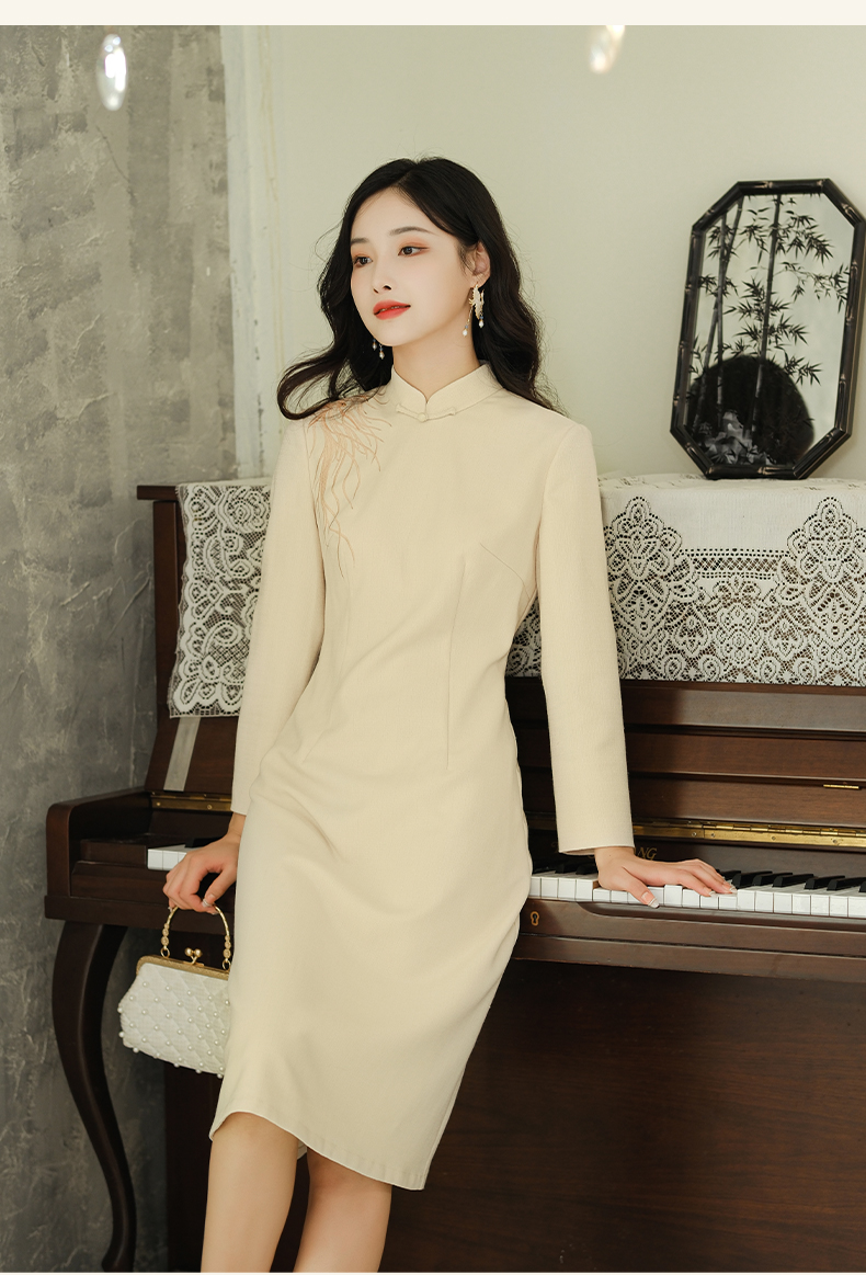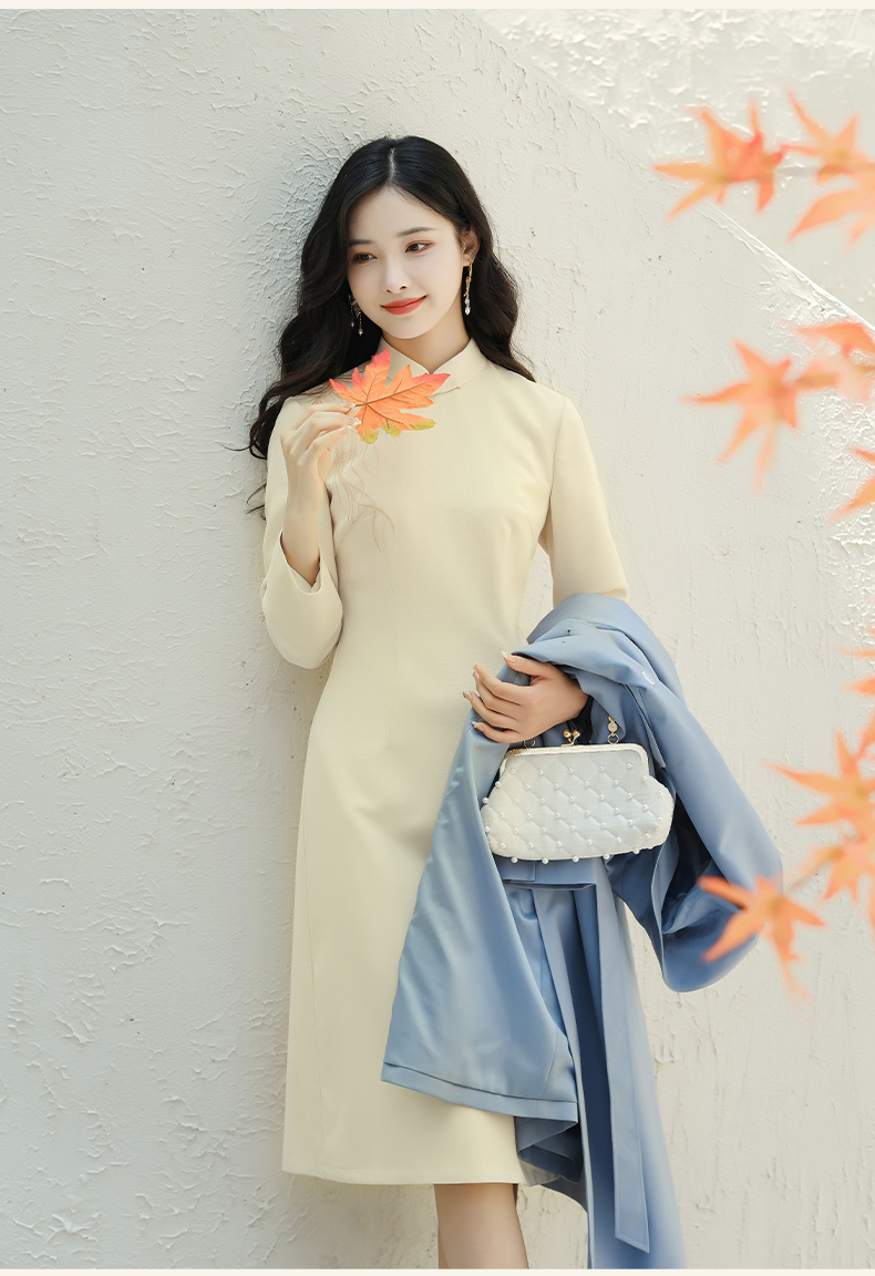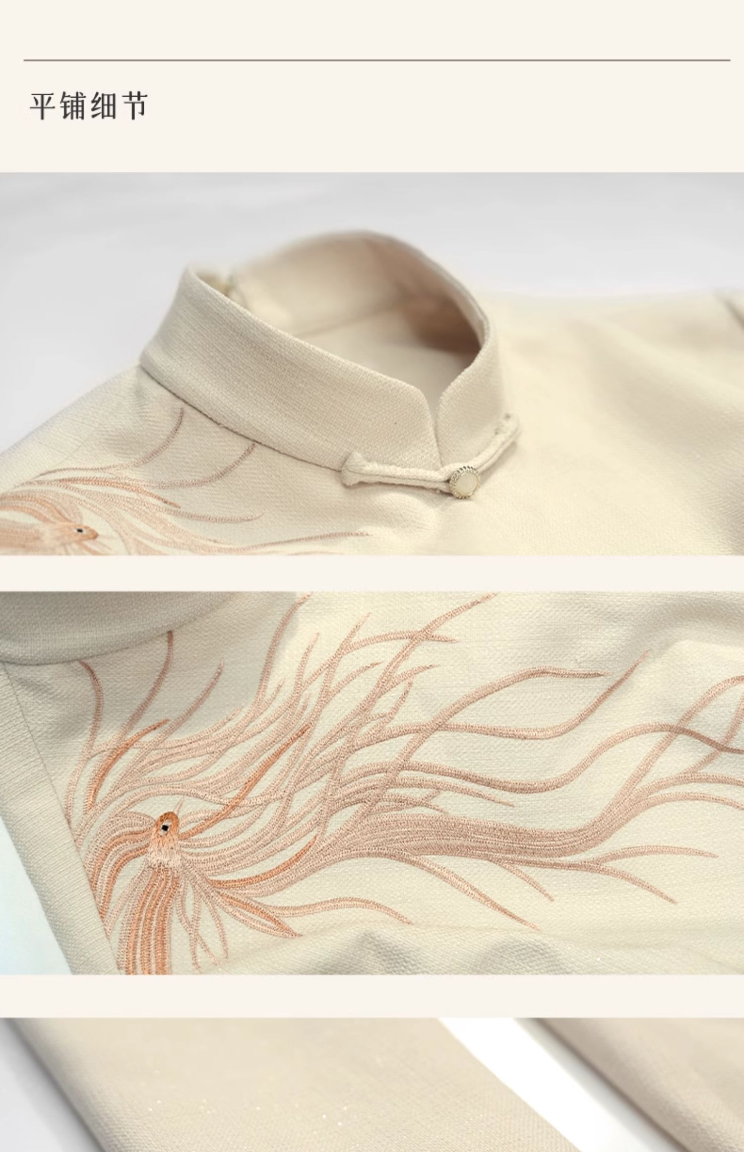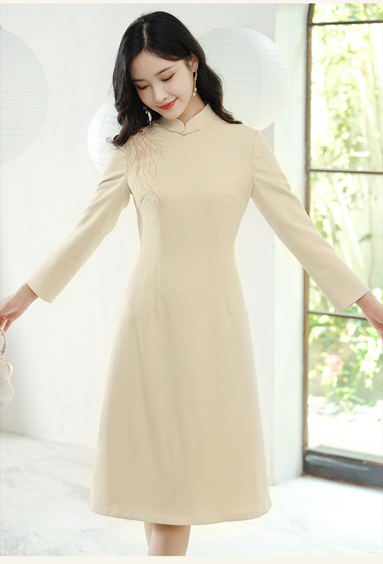 逸红颜 停云 2025秋冬新款A摆刺绣中式改良旗袍显瘦职业连衣裙女