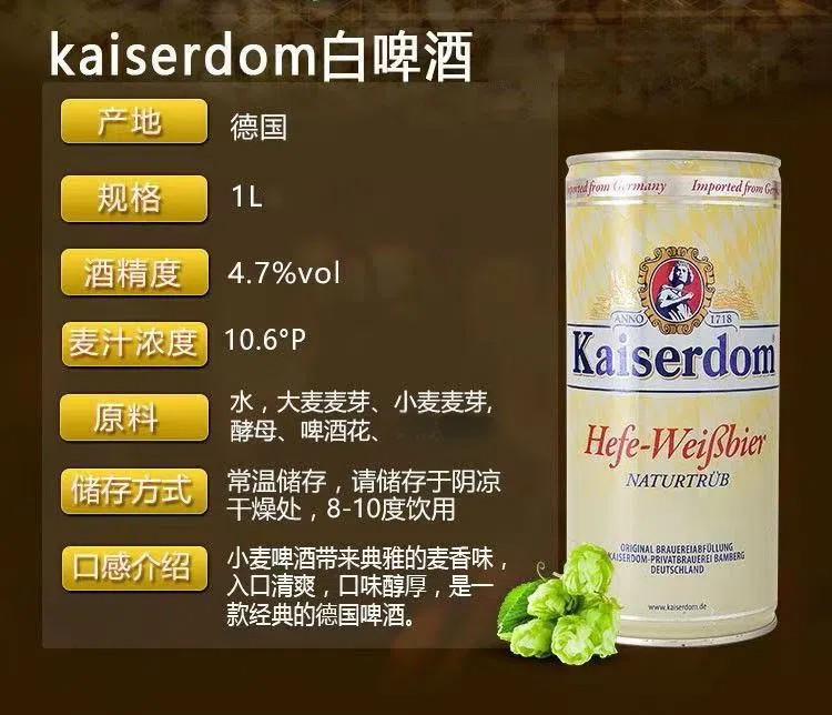德国进口凯斯特(凯撒)白啤 易拉罐 1L*12罐