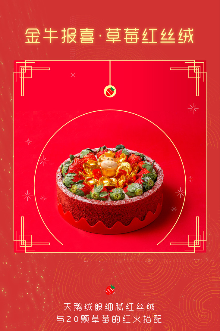 金牛报喜 -草莓红丝绒蛋糕,可选2/3/5磅(深圳均可配送)