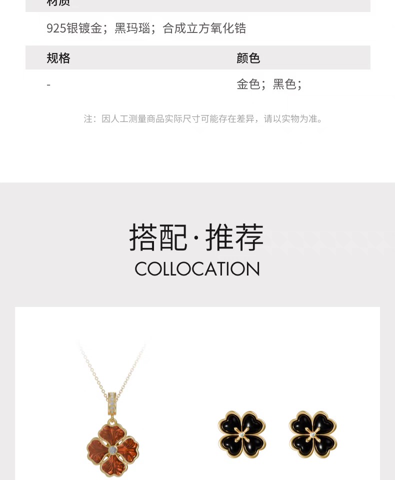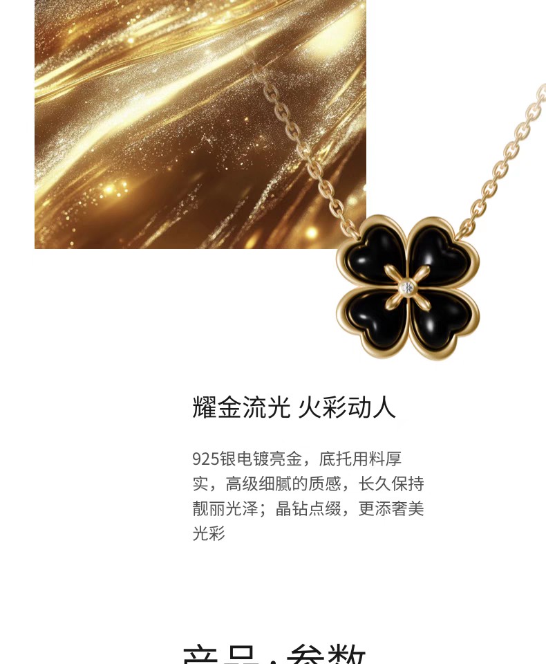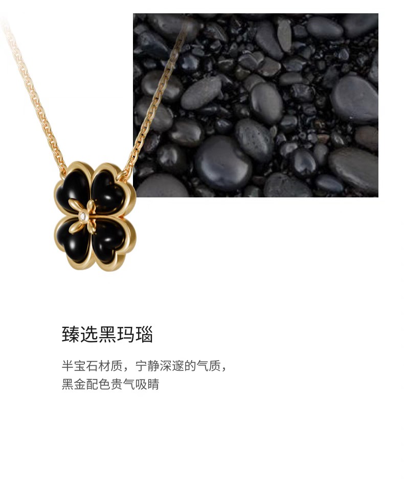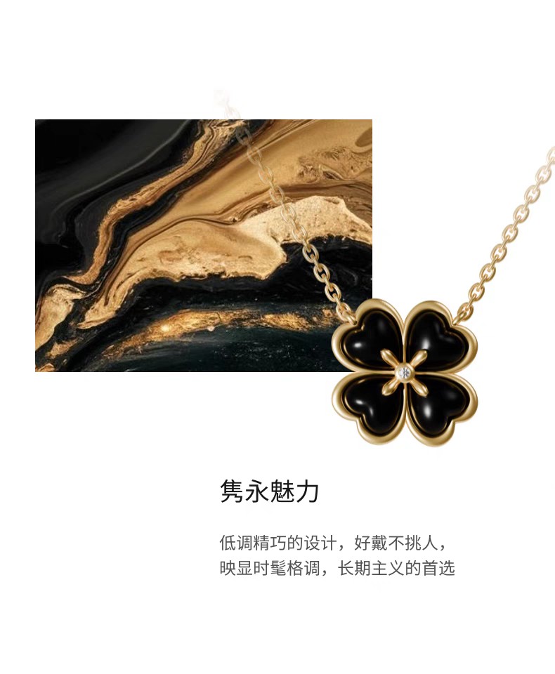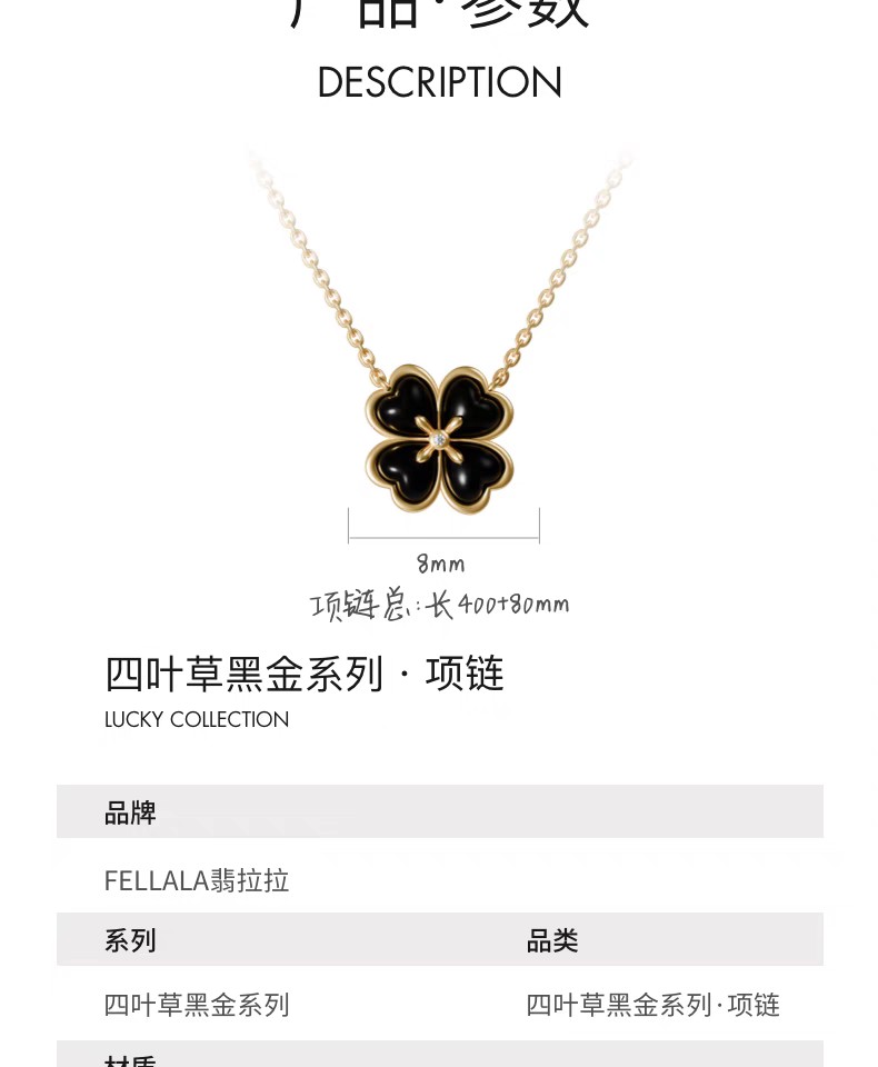 2楼「新品」Fellala/翡拉拉「四叶草」925银饰项链黑色高贵优雅颈饰货号925413204吊牌价1399现价1259