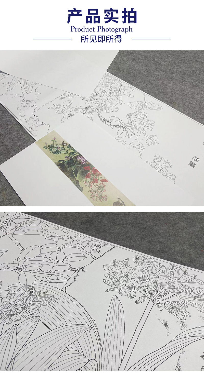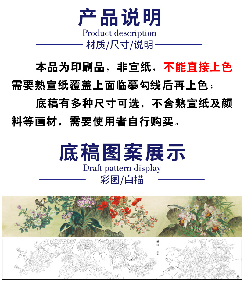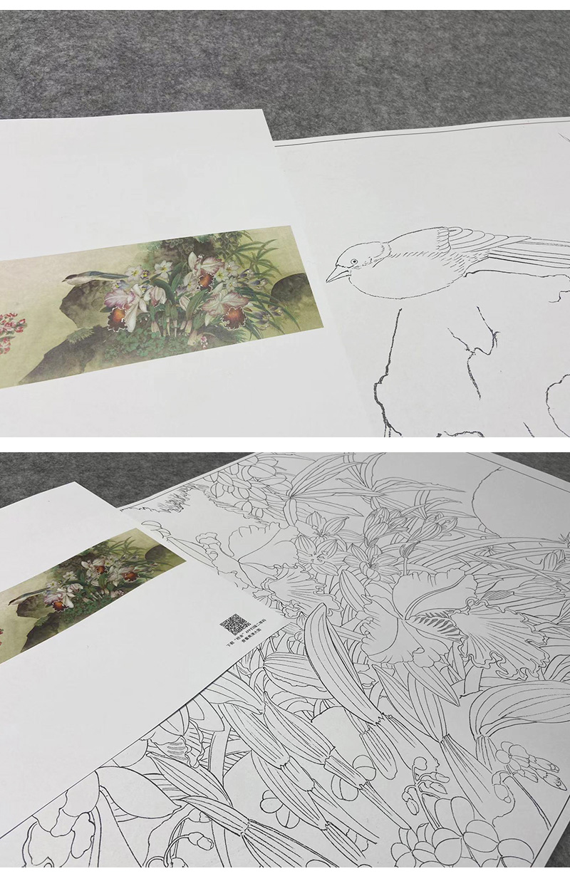 【大彩图】横幅工笔画长卷白描底稿临摹勾线花鸟线稿高清打印稿 HN05