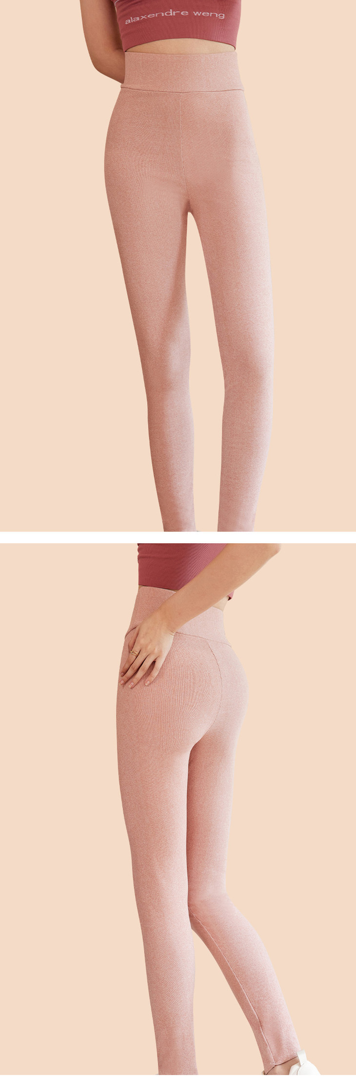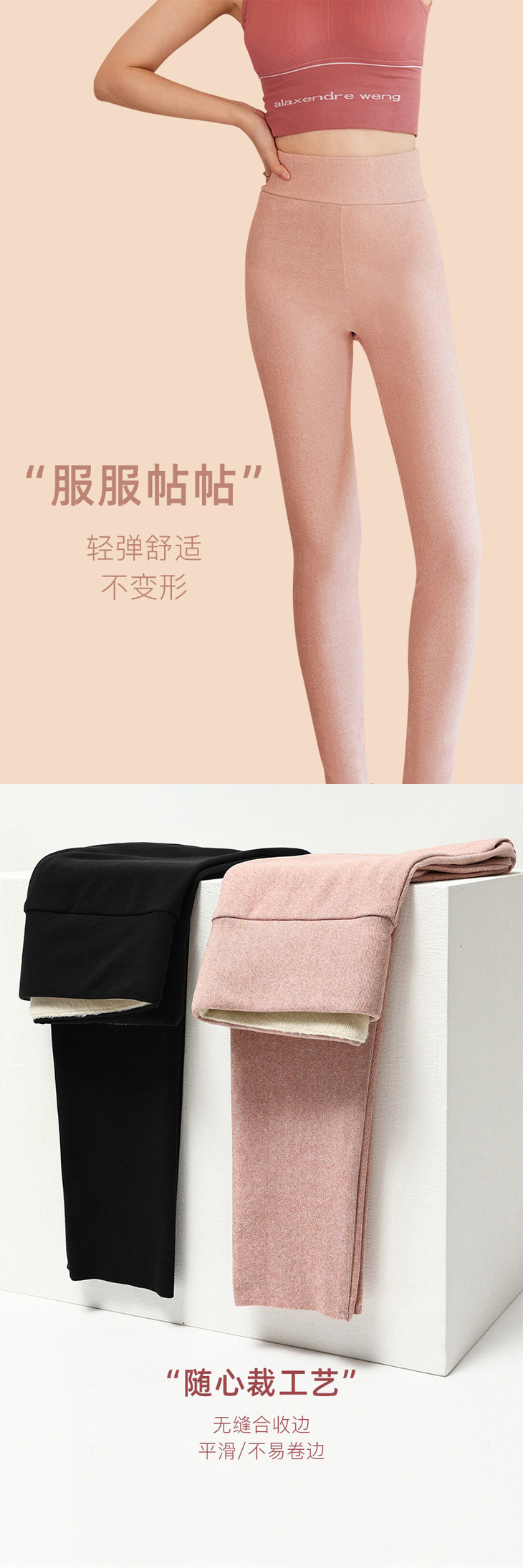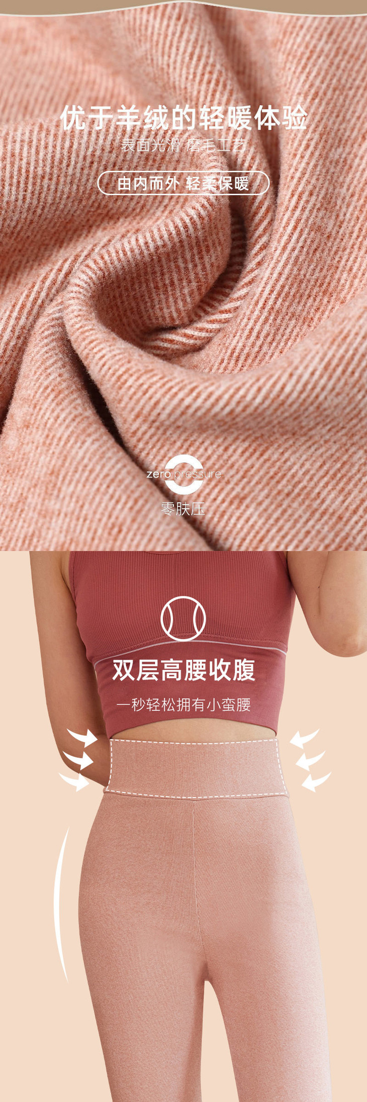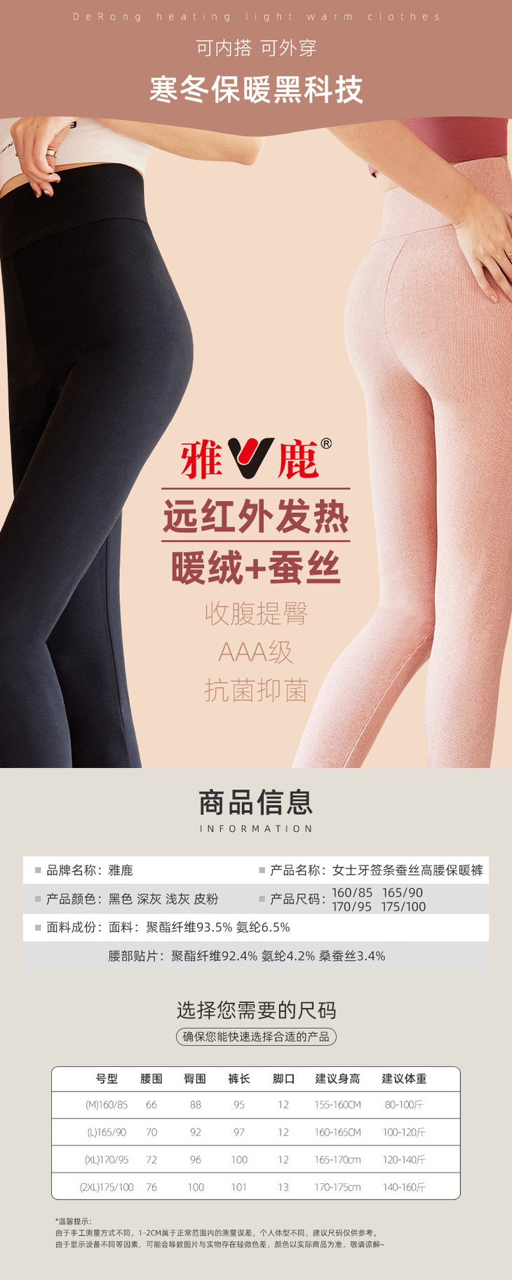 雅鹿女士牙签条蚕丝高腰保暖裤(两条立减10元)