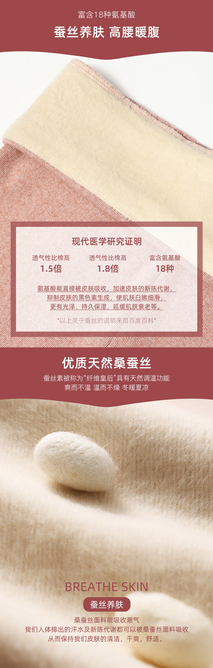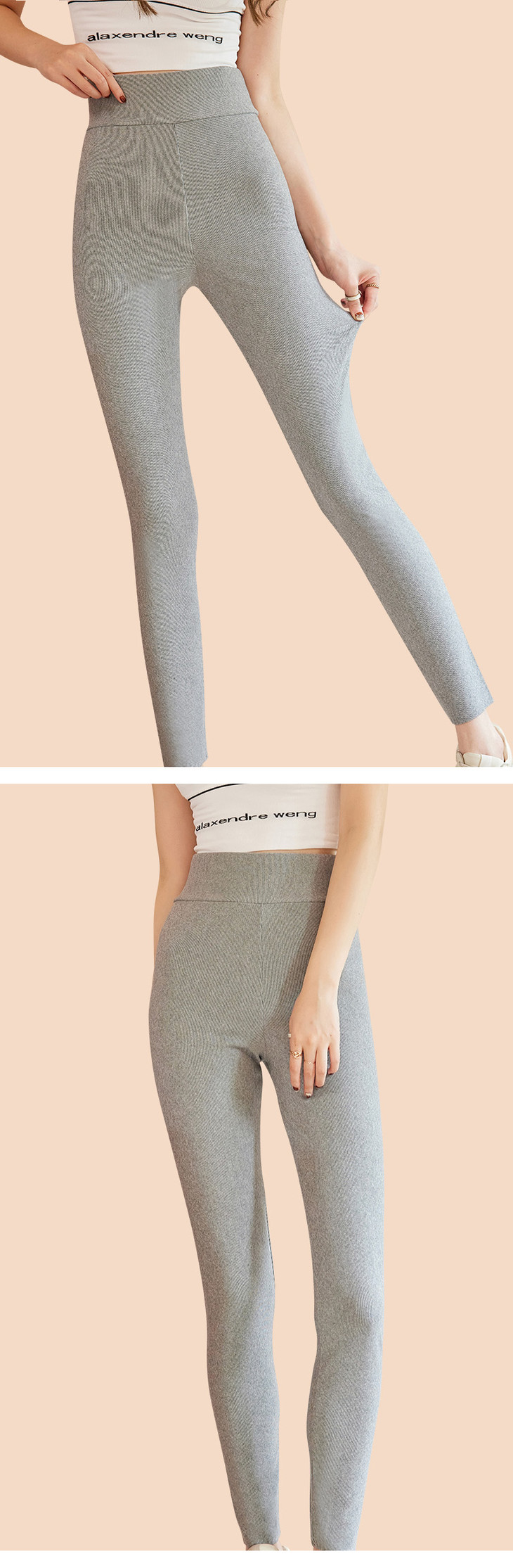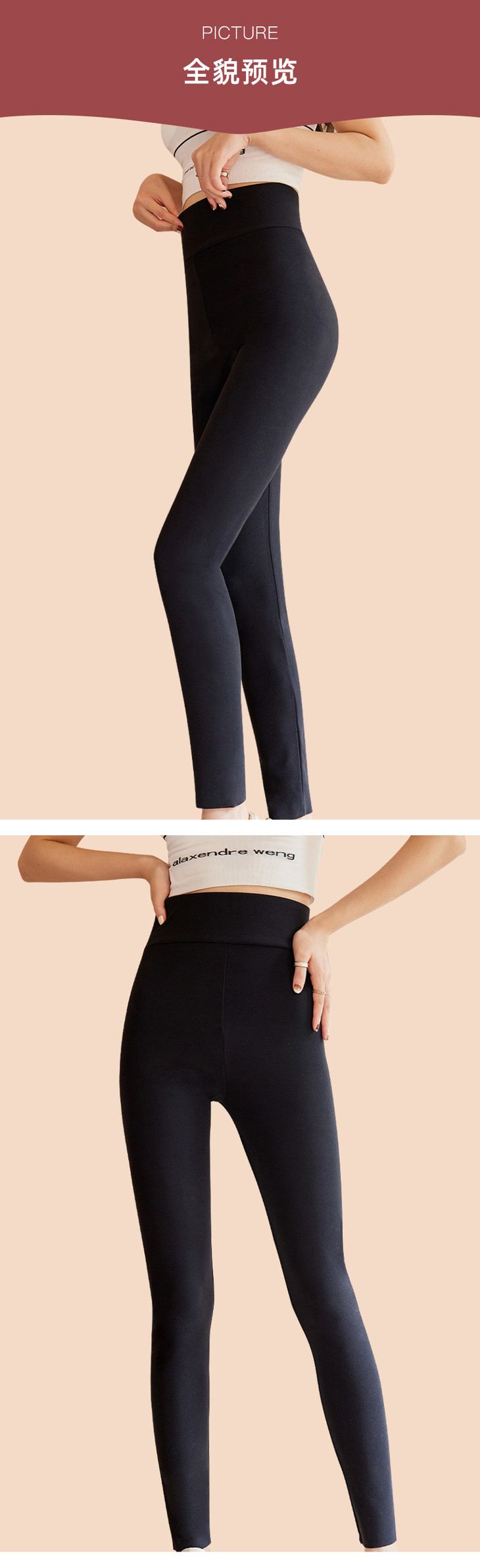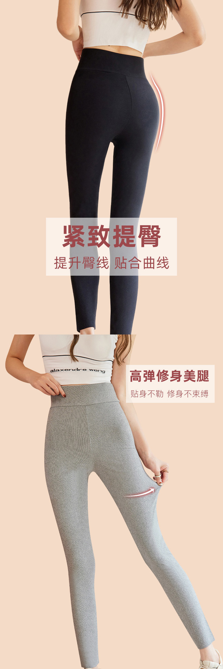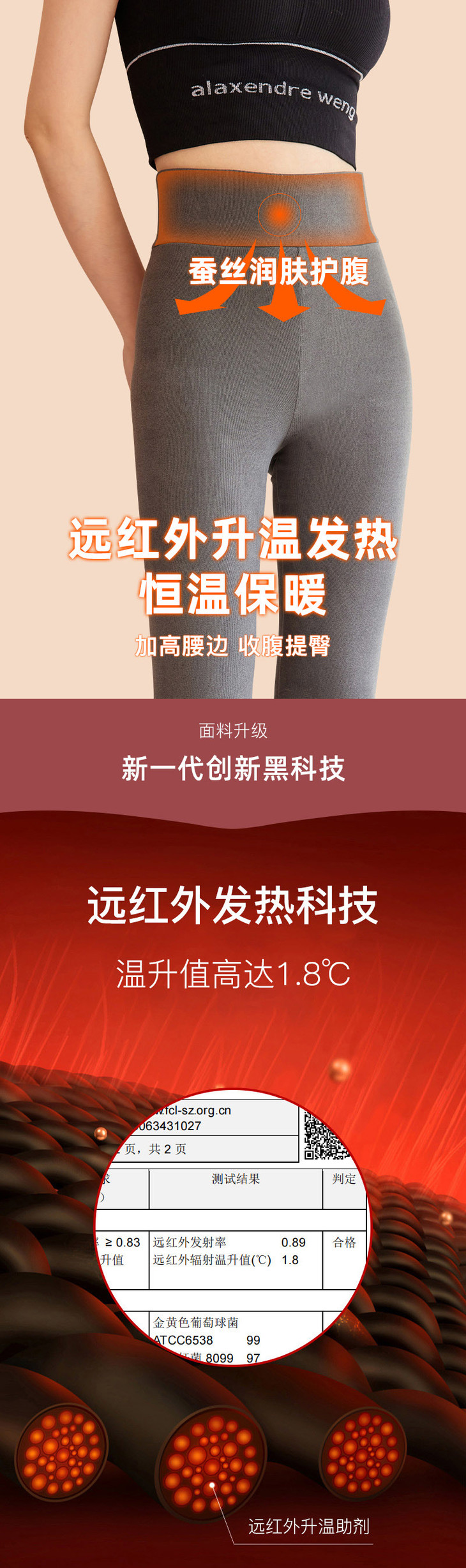 雅鹿女士牙签条蚕丝高腰保暖裤(两条立减10元)